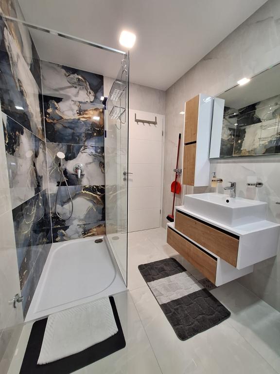 Das Zimmer hat alle unsere Erwartungen erfüllt. Ausrüstung, Ansicht, Bestellung. Die Wohnung war perfekt vorbereitet. Darüber hinaus sind die Besitzer großartig. Sehr hilfsbereite und positive Menschen. Wir fühlten uns dort wie Familienmitglieder. Darüber hinaus wurden wir mit Erfrischungen und lokalen Getränken begrüßt und während unseres Aufenthaltes gab es auch ein abendliches Grilltreffen für alle Gäste des Gästehauses. Wir reisen oft nach Polen, aber auch nach Kroatien und haben noch nie eine so wunderbare Gastfreundschaft erlebt. Ich empfehle diesen Ort!!!