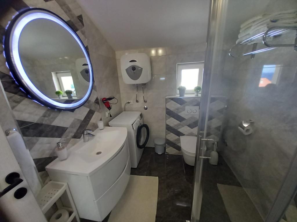 Vielen Dank an Frau Vera und Herrn Franjo für die Gastfreundschaft, die wir bei ihnen erfahren durften. Sie sind sehr nette, hilfsbereite und nette Gastgeber – die besten, die wir je im Urlaub hatten. Wir haben uns in ihrer Gesellschaft und Unterkunft sehr wohl gefühlt. Die Apartments sind sehr sauber, modern eingerichtet, mit allem ausgestattet, was man braucht und mit einem wunderschönen Blick auf das Meer. Die Lage ist super, etwas bergauf, nur wenige Minuten vom wunderschönen Strand und dem Zentrum der Altstadt entfernt. Parkplätze befinden sich im Gebäude. Der Höhepunkt des Ganzen war das Abendessen für alle Gäste, das köstlich war, mit gegrilltem Fisch und Barbecue. Ich würde es jedem empfehlen, Sie werden es nicht bereuen, die Unterkunft, die Gastgeber und Primošten selbst sind wunderschön. Vielen Dank für einen wunderschönen Urlaub, wir kommen bestimmt wieder.