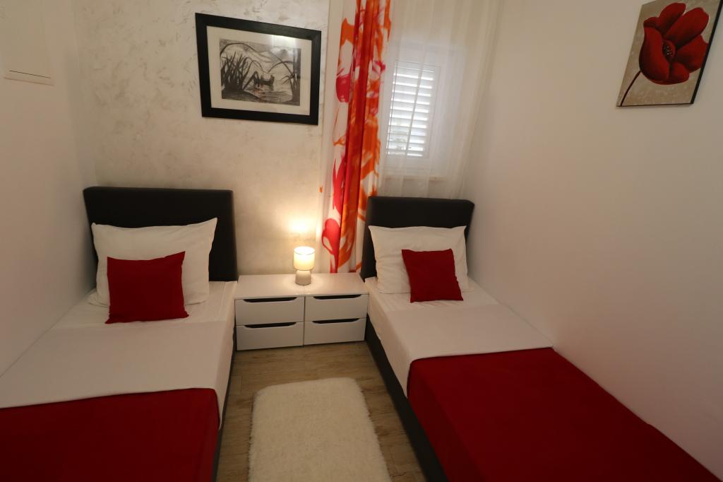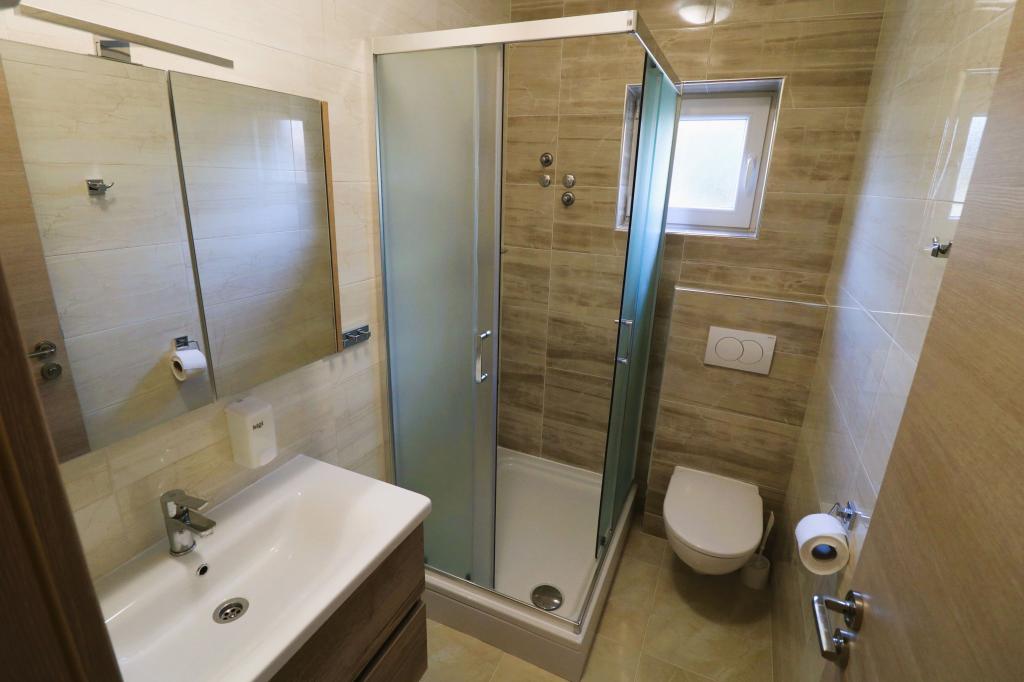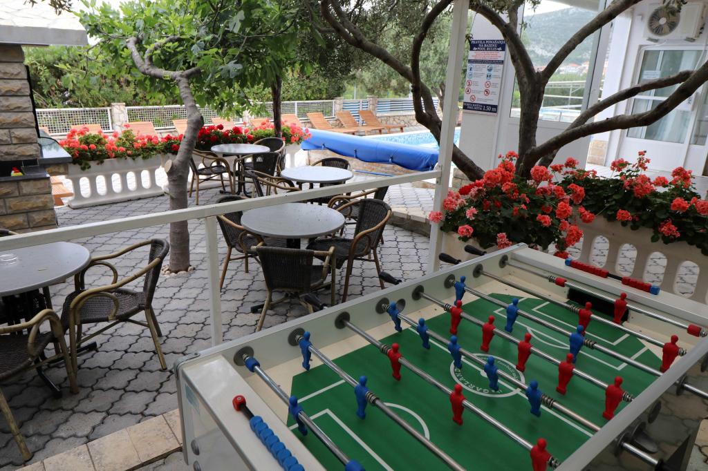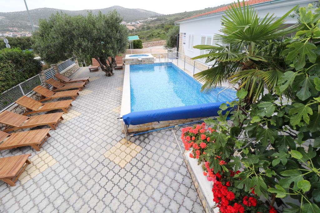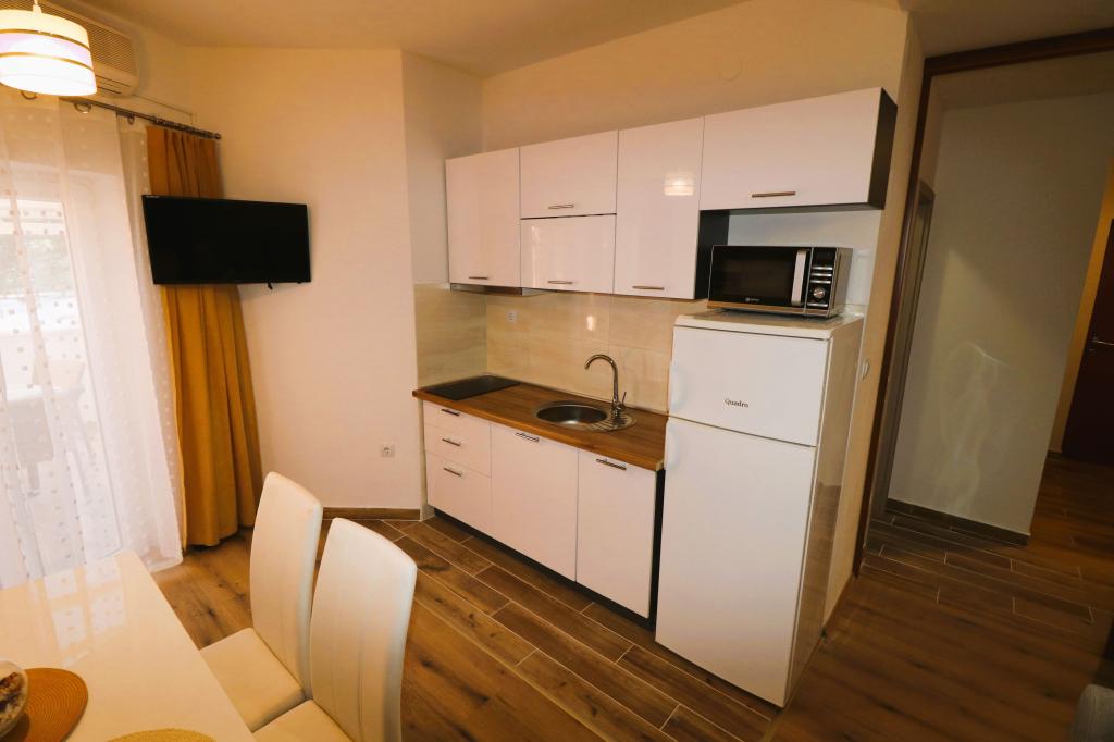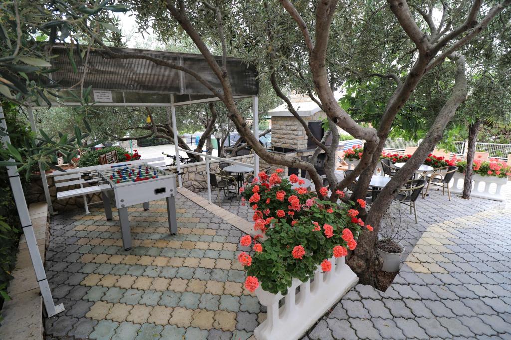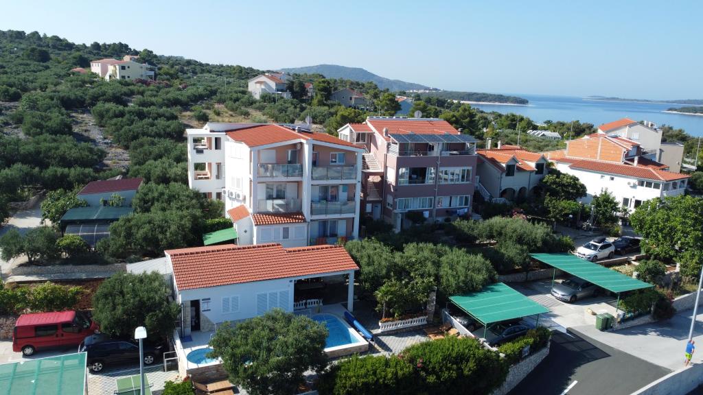 Die Apartments Bilokapić befinden sich in unmittelbarer Nähe des Adria-Autocamps in Primošten, 25 km südlich von Šibenik. Zwei Häuser liegen in einem ruhigen Teil von Primošten, umgeben von viel Grün und mediterraner Flora. Alle Apartments sind klimatisiert und modern eingerichtet. Ihre Balkone bieten einen wunderschönen Blick auf den Archipel von Šibenik. Zum Komfort der Unterkunft trägt der 2400 m² große Garten bei, in dem es einen Swimmingpool, ein Hydromassagebecken, Sonnenliegen, eine Toilette und eine Außendusche, Tischfußball, Tischtennis, Tische und Stühle sowie einen Gartengrill gibt. Der Parkplatz ist größtenteils mit Schatten bedeckt. Die Küste und der Strand sind ca. 100 Meter entfernt. Der Strand ist abwechslungsreich, aus Kieselsteinen in Kombination mit sanften Felsen, mit einem großen Teil im Schatten von Pinien, und unsere Gäste können ihn ohne Aufpreis nutzen. In unmittelbarer Nähe befindet sich ein Supermarkt, ein Restaurant, eine Café-Bar und eine Konditorei. Das Zentrum von Primošten mit seinem reichhaltigen touristischen Angebot ist etwa 3 km entfernt. Nationalpark Krka etwa 40 km und Flughafen Split etwa 45