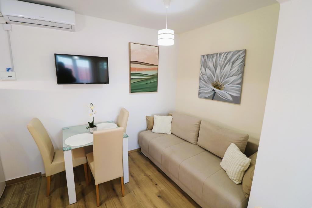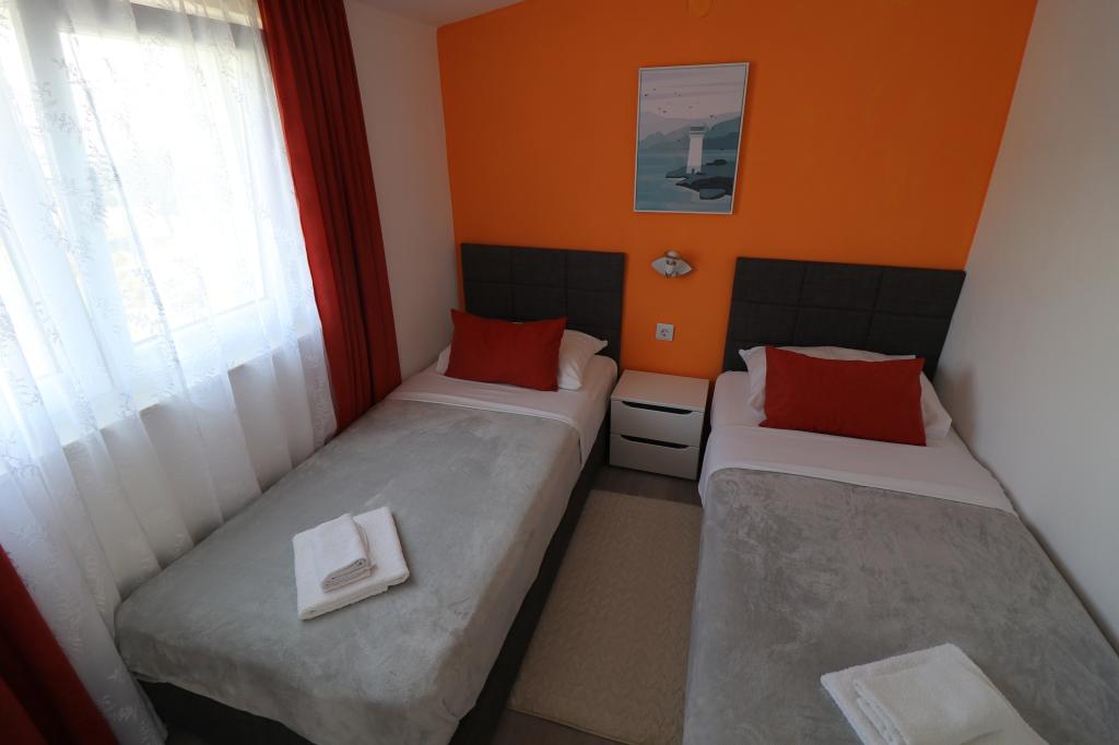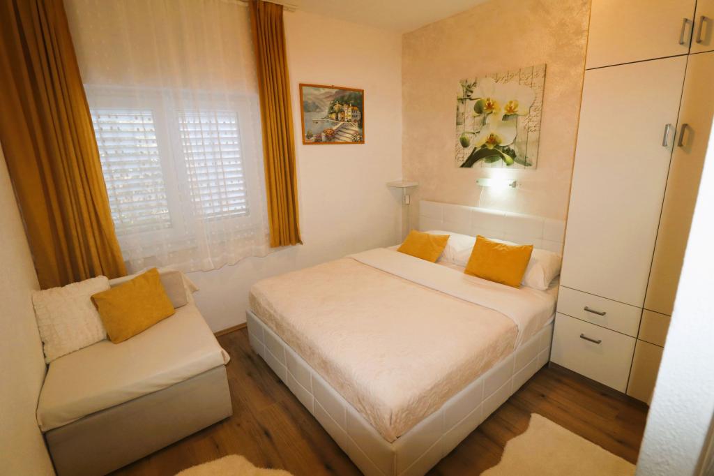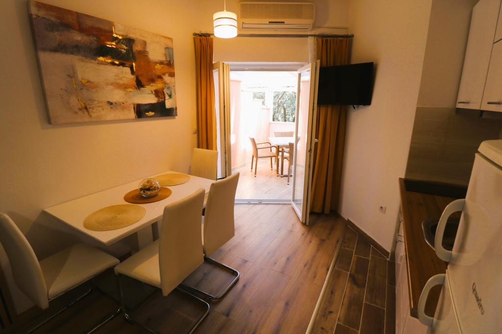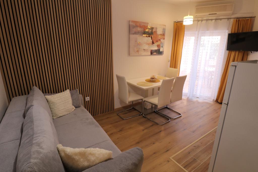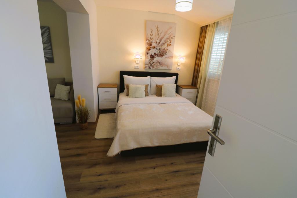 Die Apartments Bilokapić befinden sich in unmittelbarer Nähe des Adria-Autocamps in Primošten, 25 km südlich von Šibenik. Zwei Häuser liegen in einem ruhigen Teil von Primošten, umgeben von viel Grün und mediterraner Flora. Alle Apartments sind klimatisiert und modern eingerichtet. Ihre Balkone bieten einen wunderschönen Blick auf den Archipel von Šibenik. Zum Komfort der Unterkunft trägt der 2400 m² große Garten bei, in dem es einen Swimmingpool, ein Hydromassagebecken, Sonnenliegen, eine Toilette und eine Außendusche, Tischfußball, Tischtennis, Tische und Stühle sowie einen Gartengrill gibt. Der Parkplatz ist größtenteils mit Schatten bedeckt. Die Küste und der Strand sind ca. 100 Meter entfernt. Der Strand ist abwechslungsreich, aus Kieselsteinen in Kombination mit sanften Felsen, mit einem großen Teil im Schatten von Pinien, und unsere Gäste können ihn ohne Aufpreis nutzen. In unmittelbarer Nähe befindet sich ein Supermarkt, ein Restaurant, eine Café-Bar und eine Konditorei. Das Zentrum von Primošten mit seinem reichhaltigen touristischen Angebot ist etwa 3 km entfernt. Nationalpark Krka etwa 40 km und Flughafen Split etwa 45