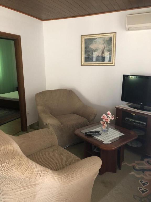 In erster Reihe zum Meer gelegen, nur 30 Meter vom Strand und 6 km vom Zentrum von Primošten entfernt, bietet dieses Apartment den perfekten Urlaub. Es besteht aus einem Schlafzimmer, einem gemütlichen Wohnzimmer mit Küche und einem Badezimmer mit Dusche. Obwohl das Apartment selbst keinen direkten Meerblick bietet, gibt es vor dem Eingang eine private Ecke mit Tisch und Stühlen. Ein besonderes Highlight ist der großzügige, 300 m² große Garten vor dem Haus, der zum Sonnenbaden, Entspannen und zur Nutzung der Außendusche einlädt. Parkplätze sind vorhanden.