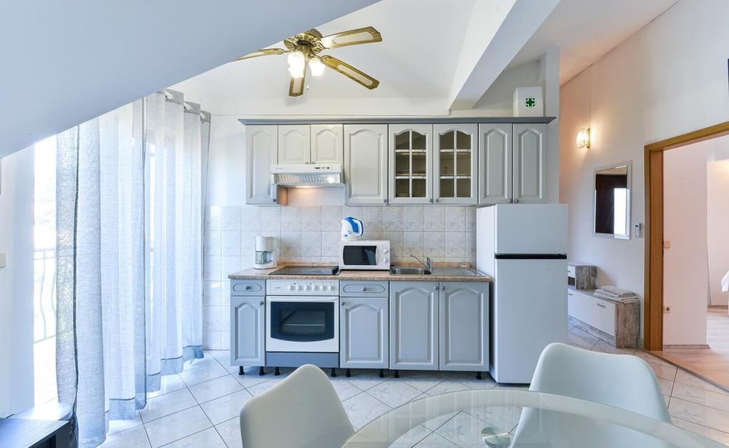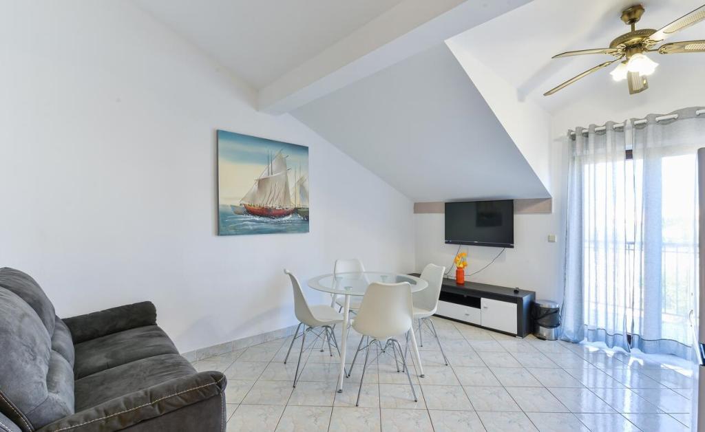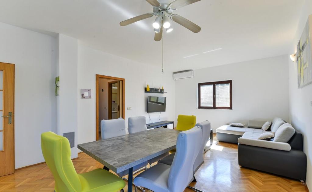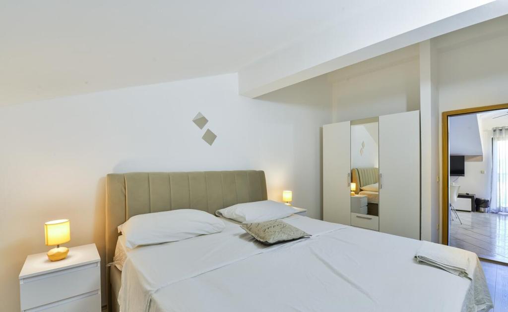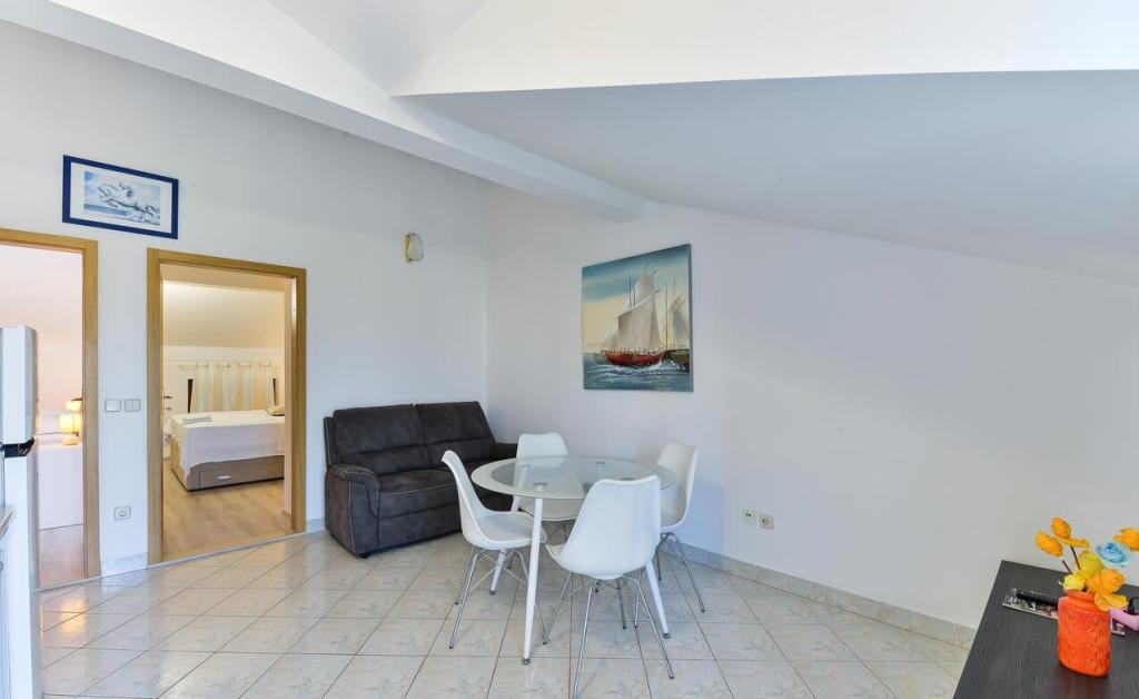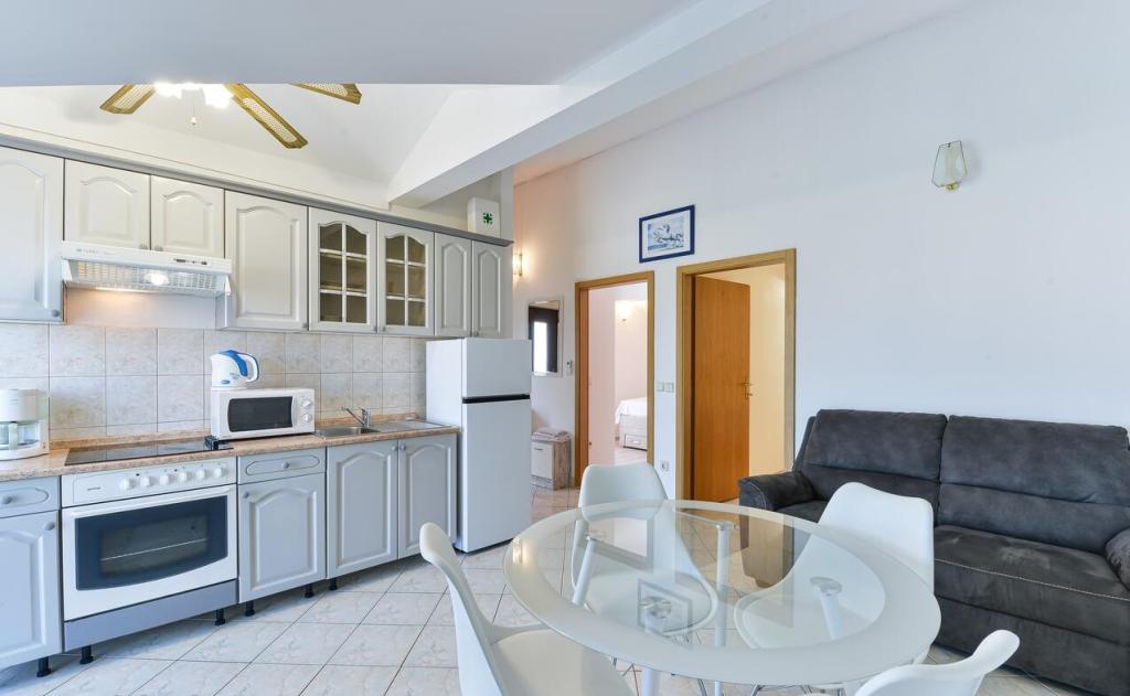 Die Apartments befinden sich 300 m vom Meer entfernt. Sie befinden sich an einem ruhigen Ort, umgeben von Olivenbäumen, Swimmingpool, Whirlpool, Grill, Spielzimmer mit Darts und Tischfußball. Großer Garten, eingezäunt...
