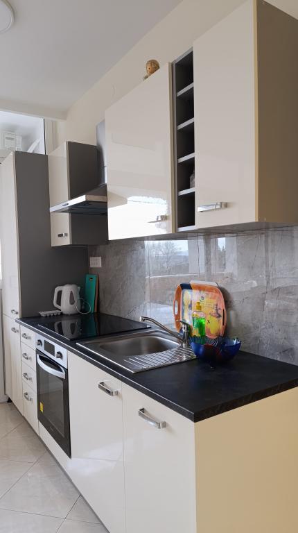 Das Haus liegt in zweiter Reihe zum Meer, in einer ruhigen Wohngegend. Alle Wohnungen verfügen über einen Balkon mit direktem Blick auf das Meer. Außerdem gibt es in unmittelbarer Nähe einen Sportplatz und einen Kinderpark.