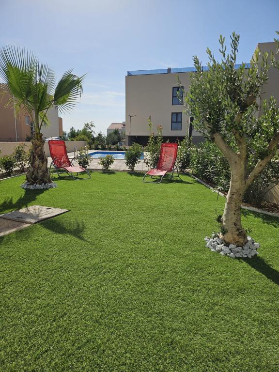 Verbringen Sie einen perfekten Urlaub in den Apartments Oleander und Lapis in Privlaka bei Zadar. Nur 80 Meter vom Meer entfernt bieten diese modern eingerichteten und voll ausgestatteten Apartments das ideale Ambiente zum Entspannen – ob mit Familie oder Freunden. Die Kombination aus Komfort, Funktionalität und der ruhigen mediterranen Atmosphäre ermöglicht Ihnen einen unbeschwerten Aufenthalt und eine echte Auszeit vom Alltag. Genießen Sie die Nähe zu wunderschönen Stränden, eine private Terrasse für den Morgenkaffee, Erfrischung am Pool und die gute Anbindung an das charmante Nin und das malerische Zadar.