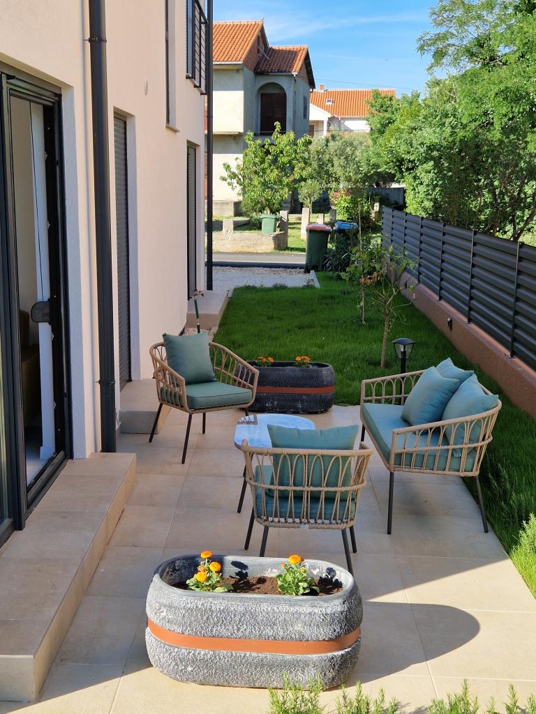 Relaxsea ist ein modernes Familienhaus mit 3 Wohnungen im Erdgeschoss, jeweils mit separatem Privatparkplatz. Die Wohnungen verfügen über ein geräumiges Wohnzimmer mit offener Küche, ein separates Schlafzimmer, ein Badezimmer mit „walk-in“ Dusche und eine Terrasse, die Privatsphäre garantiert. Das Haus zeichnet sich durch einen Gemeinschaftspool, eine Außendusche und einen Grill, einen 100 Meter von der Unterkunft entfernten Strand und die Nähe zu allen relevanten Einrichtungen wie einem Geschäft, einem Restaurant, einer Apotheke und einem Postamt aus. Jede Wohnung verfügt über eine voll ausgestattete Küche mit Induktionskochfeld, Geschirrspüler, Grill, Mikrowelle und Kühlschrank mit Gefrierfach. Darüber hinaus werden ein kostenloser Internetzugang und ein Fernseher mit Zugang zu „Streaming“-Diensten angeboten, Handtücher und Bettwäsche sind in der Einrichtung vorhanden. Eine ideale Wahl für Familien mit Kindern, ältere Menschen und Radsportbegeisterte, da sich ein kilometerlanger Wander- und Radweg rund um die gesamte Halbinsel Privlaka erstreckt.
