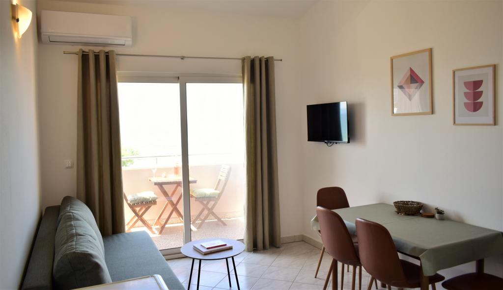 Apartment mit wunderschönem Blick auf das Meer. Freundliche Gastgeber. Strand direkt unterhalb der Wohnung, Sandstrand 2 Gehminuten entfernt. Cafés, Fastfood und Restaurants befinden sich direkt am Strand.