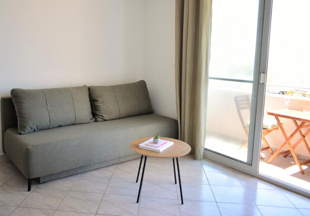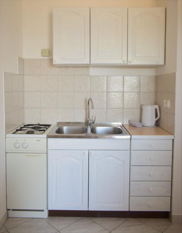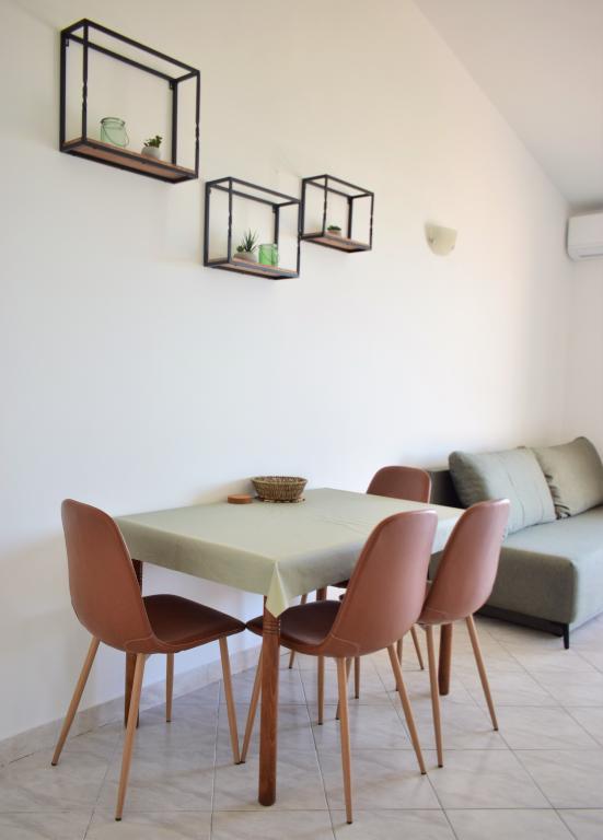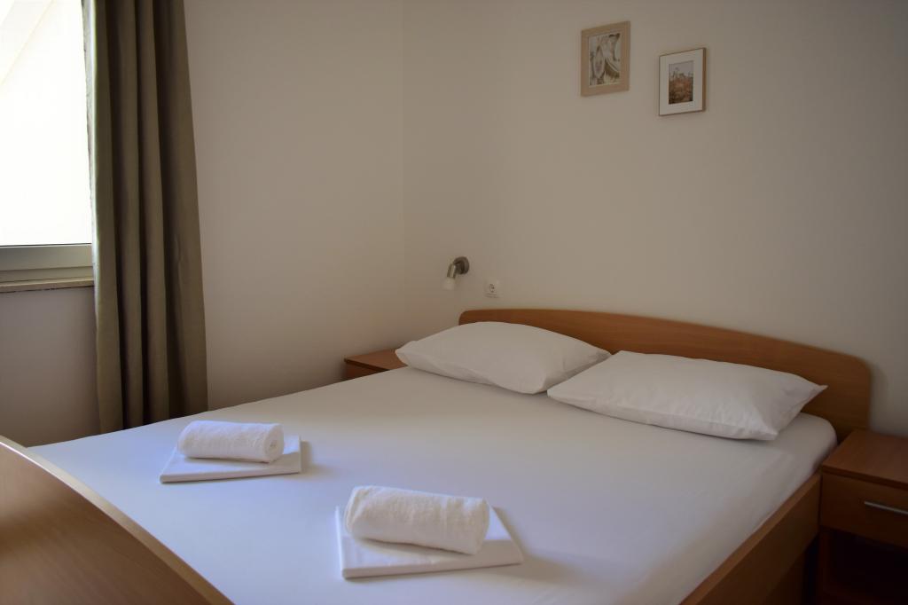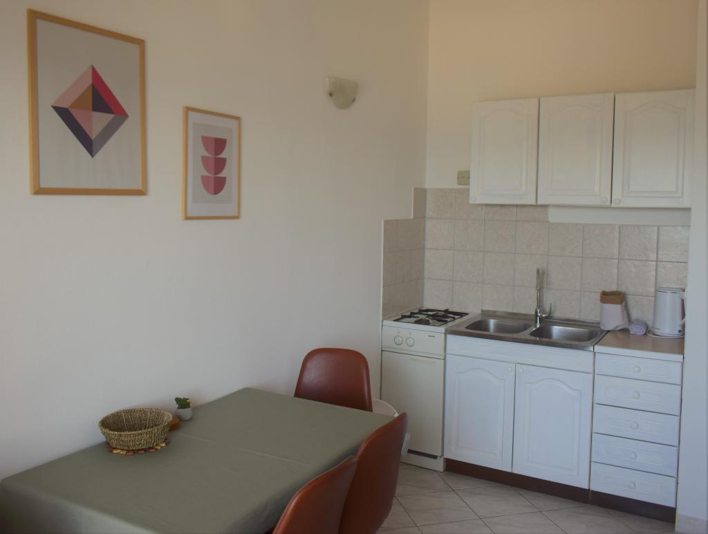 Angenehme Apartments in ruhiger Lage, in erster Reihe zum Meer gelegen. Die Anlage liegt nur 10 Gehminuten von allen für einen angenehmen Urlaub notwendigen Einrichtungen wie einem Geschäft, einer Apotheke, einer Klinik, einem Postamt usw. entfernt. Der Strand befindet sich in unmittelbarer Nähe der Anlage, nur 50 Meter entfernt. Die Anlage bietet auch Parkplätze und die Apartments selbst befinden sich im zweiten Stock der Anlage, von wo aus Sie einen wunderschönen Blick auf das Meer und die Inseln genießen können.