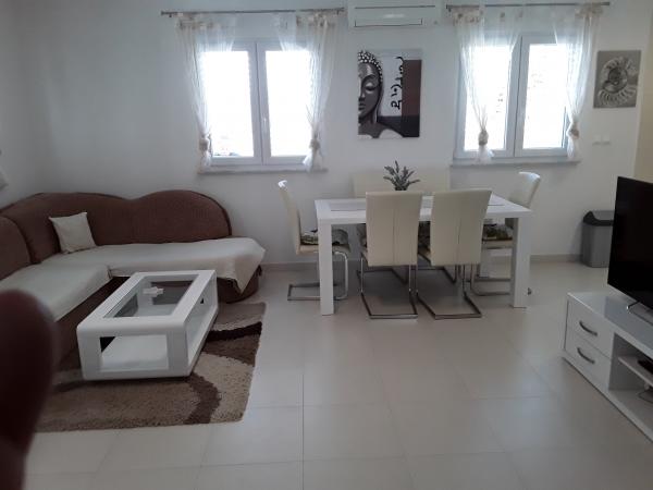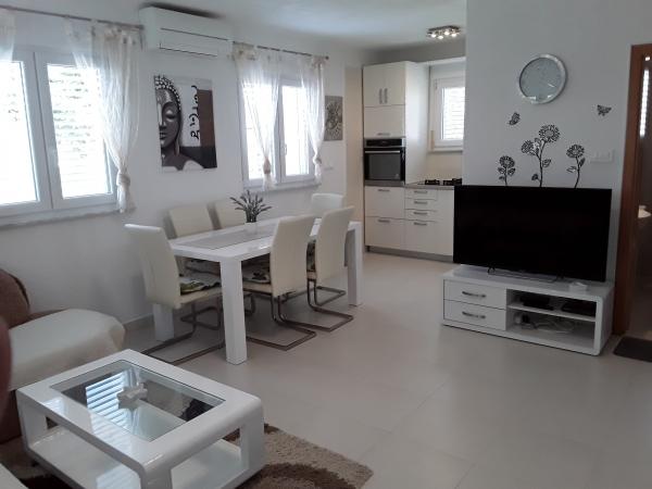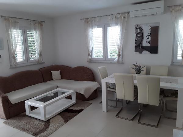 Apartment Nina hat eine Wohnung für 4 1 Person und ist im Erdgeschoss eines Privathauses befindet sich in einer ruhigen Bucht zwischen Škrapavac Privlaka und Zaton (1km) nur 100 m vom Strand entfernt. Die Appartements bestehen aus zwei Schlafzimmern, Küche, Esszimmer, Wohnzimmer, Bad und Terrasse. Die Wohnung ist komplett ausgestattet, verfügt über eine Terrasse, einen Parkplatz (1 Parkplatz), ist der Hof ein Grill und Außendusche. Die Wohnung ist ausgestattet mit Klimaanlage, SmartTV TV, Sat-TV, Kühlschrank mit Gefrierfach, Mikrowelle, Internet. Der Preis beinhaltet eine komplette Bettwäsche und lokale Steuern.