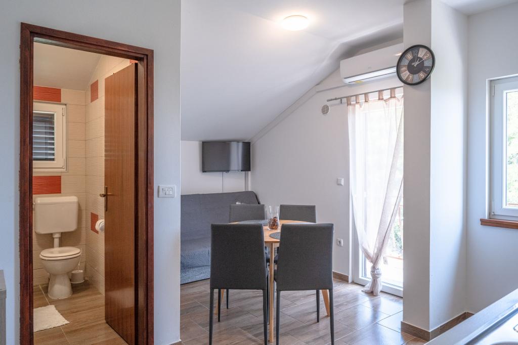 Die Prižba Apartments Bumba sind eine private Unterkunft auf der Insel Korčula, in der Stadt Prižba mit 3 Apartments. Sie liegen 100 Meter vom Strand entfernt. In der Nähe des Strandtyps žal. Die Apartments verfügen über Klimaanlage, Internet, Grill, Parkplatz. Vom Balkon aus bietet sich eine schöne Aussicht auf die Halbinsel Ratak und die kleinen Inseln. Nächster Strand (m): 100 Art des nächstgelegenen Strandes: Betonplatten, žal Entfernung zum nächsten Kieselstrand (m): 100 Stadtzentrum (m): 100 Restaurant (m): 100 Geschäft (m): 300 Post: Blato, 10 km Ambulanz: Blato, 10 km Fährhafen: Vela Luka, 17,5 km Apartment Nr. 1 ist ein großes Apartment mit 2 Schlafzimmern und Klimaanlagen in jedem Zimmer.