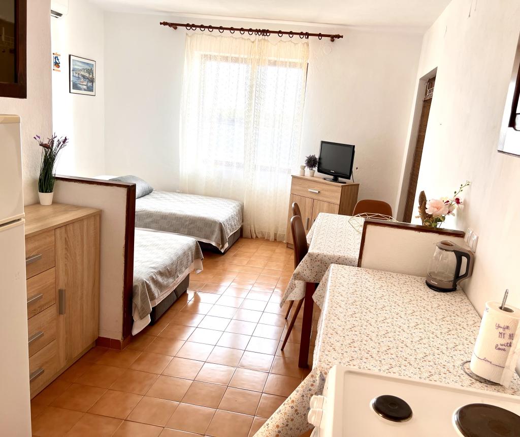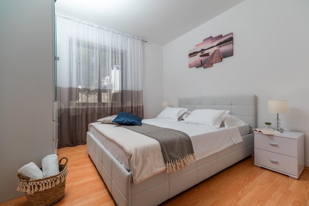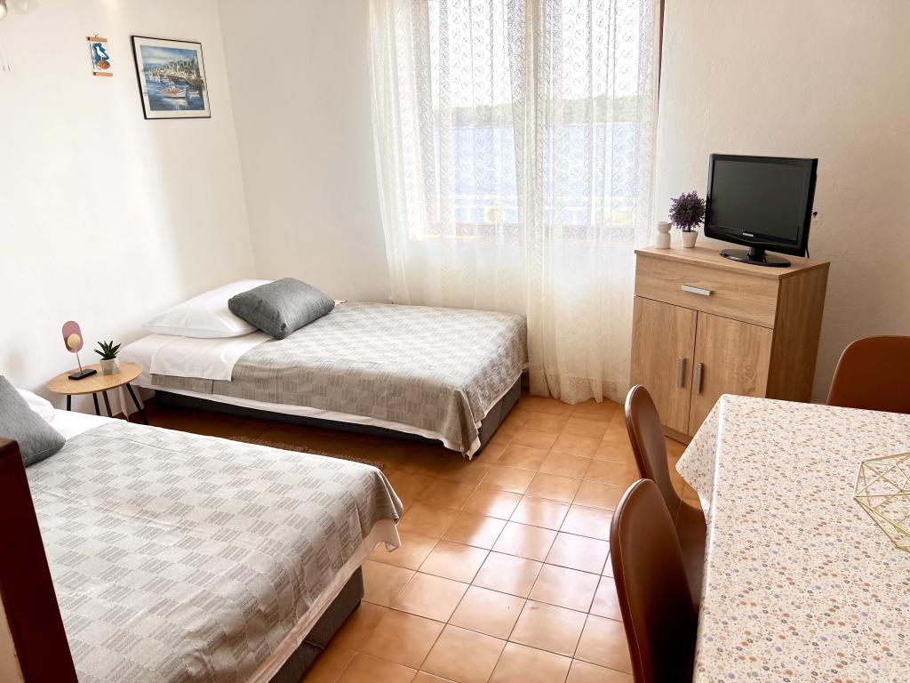 Apartments Franulović sind in einer ruhigen Gegend Prišćapac auf der Insel Korcula, umgeben von Pinienbäumen. Beide Suiten bieten einen atemberaubenden Blick mit einer überdachten Terrasse auf dem kristallklaren Meer und Inseln. Die Appartements bestehen aus einer Küche mit allen notwendigen Einrichtungen, ein Badezimmer und zwei Schlafzimmer (Doppelbett, 2 Einzelbetten). . Wi-Fi ist kostenlos. Privatstrand an der Treppe ist nur 60 m, und haben auch die Möglichkeit, den Anlegeplatz für Boote verwendet wird. Die Wohnung befindet sich in der Nähe aller Annehmlichkeiten wie Geschäfte, Restaurants, Strand.