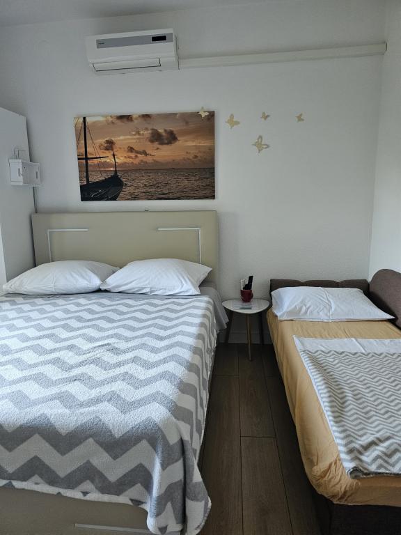 Studio für 2 Personen, Studio für 3 Personen, Zimmer, Apartment, erste Reihe am Meer, Stadtzentrum, gesicherter Parkplatz für jede Wohneinheit (100 Meter vom Gebäude entfernt)