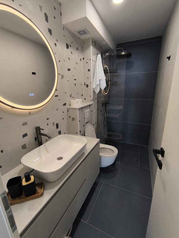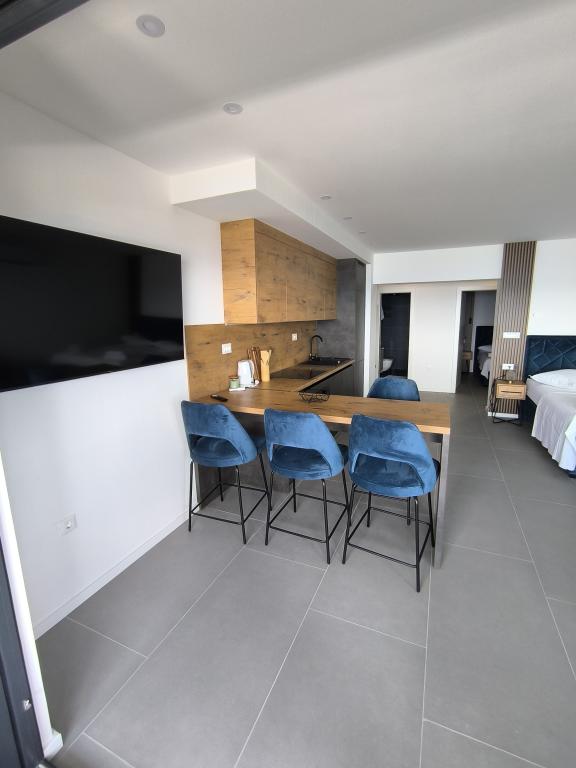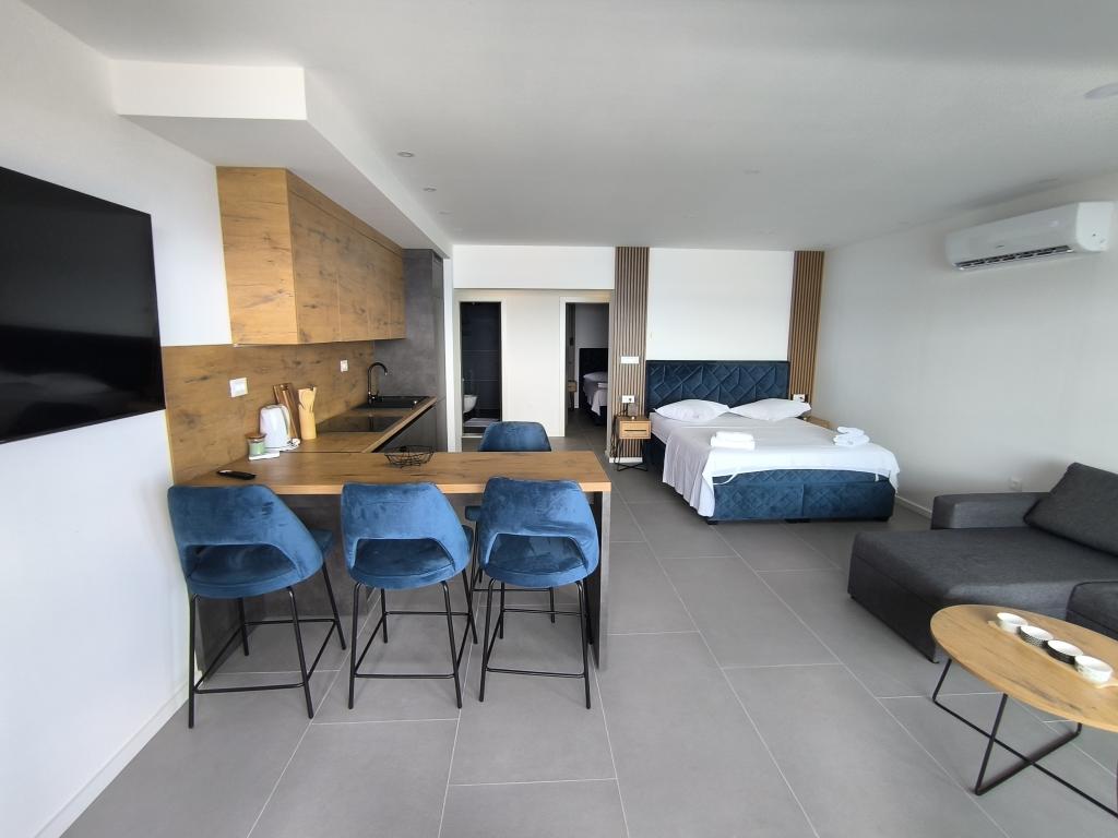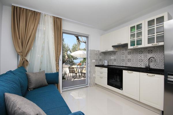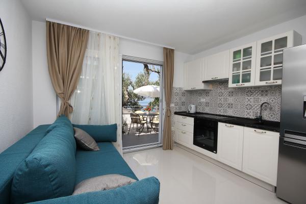 Die Wohnung ist ordentlich, funktional, ästhetisch ansprechend und wird durch eine schöne Terrasse mit Blick auf das Meer und schöne Pflanzen rund um das Haus ergänzt. Alles, was Sie brauchen, ist in der Nähe (Strand, Geschäft, Restaurant und Café) und es gibt keine Hektik. Die Besitzer sind sehr nett und aufgeschlossen und helfen bei Bedarf. Loben