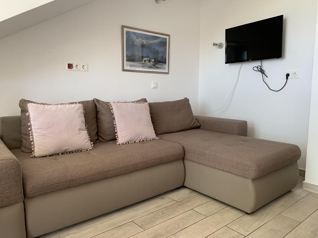 Promajna Wohnung 200 m vom Meer entfernt, Baujahr 2007. Separate 3 Wohnungen pro Etage mit Meerblick. Gesicherter Parkplatz, Fernseher, Klimaanlage, Internet. Der Strand liegt in einem Pinienwald. Ein kleiner Badeort, ideal für den Urlaub, neben dem sich ein Kinderdorf befindet, das für die Behandlung von Bronchitis bekannt ist. Jede Wohnung verfügt über ein Schlafzimmer mit einem Doppelbett und einem zusätzlichen Bett, ein Badezimmer, eine Küche mit Sofa und eine Terrasse mit Meerblick. Die Möbel sind neu. Makarska ist 5 km entfernt. Baska Voda ist 3 km entfernt. Promajna ist mit Baška Vod durch eine Promenade durch einen Kiefernwald am Meer verbunden. Die Kurtaxe ist nicht im Preis inbegriffen.