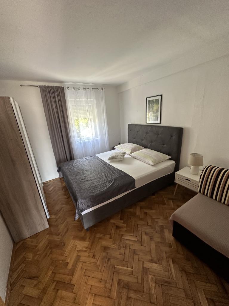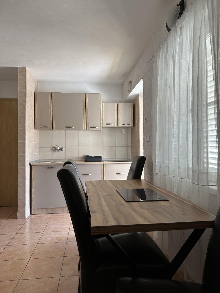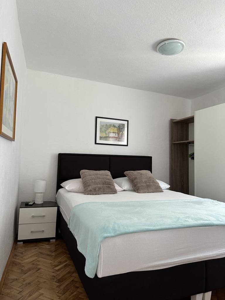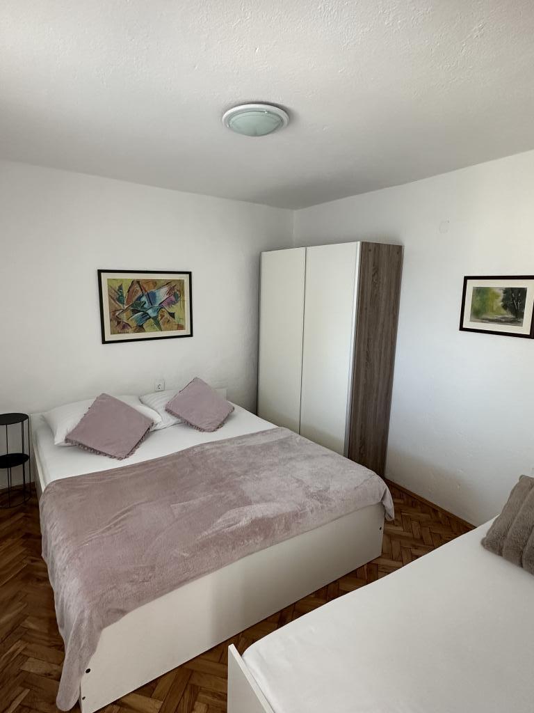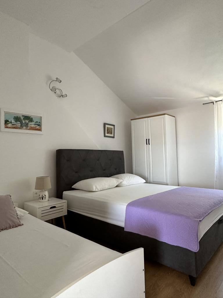 Promajna Wohnung 200 m vom Meer entfernt. Separate 3 Apartments pro Etage mit Meerblick. Parkplatz, TV, Klimaanlage, Internet. Der Strand liegt in einem Pinienwald. Ein kleiner Badeort, ideal für einen Urlaub, neben dem sich ein Kinderdorf befindet, das für die Behandlung von Bronchitis bekannt ist. Jede Wohnung verfügt über zwei Schlafzimmer mit Doppelbetten plus Zustellbett, Bad, Küche, Terrasse mit Meerblick. Makarska 5km entfernt. Baska Voda 3km entfernt. Promajna ist mit der Promenade Baška Voda durch den Kiefernwald am Meer verbunden. Der Preis beträgt 80 Euro zuzüglich 1 Euro Kurtaxe pro Erwachsenem.