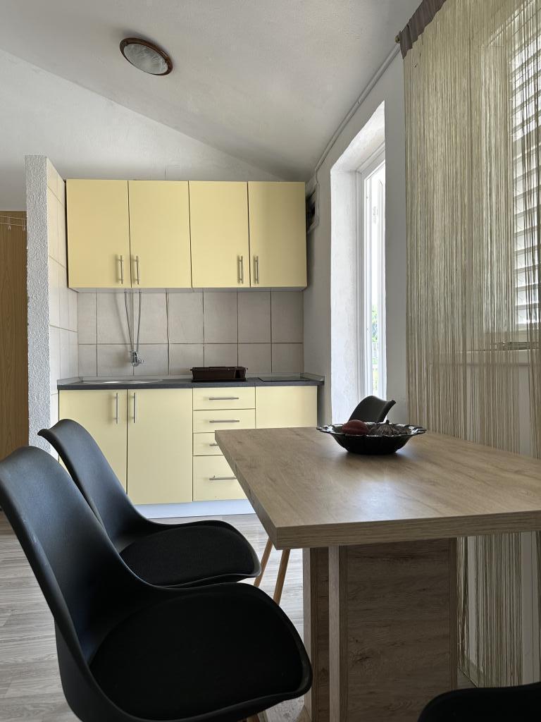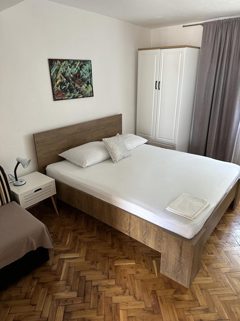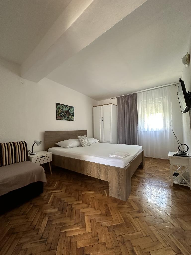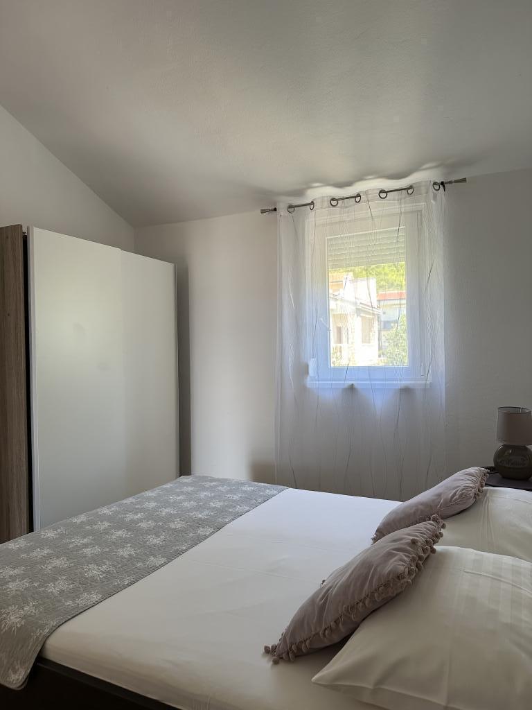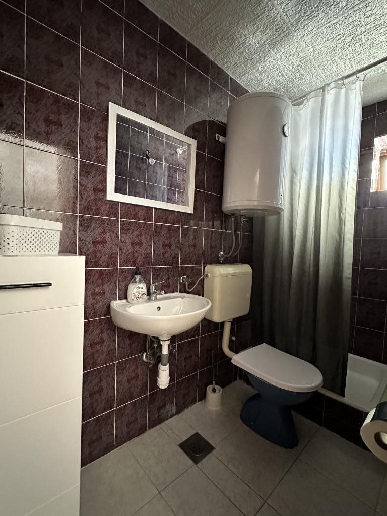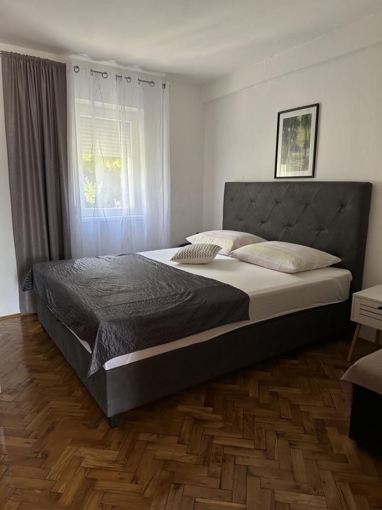 Promajna Wohnung 200 m vom Meer entfernt. Separate 3 Apartments pro Etage mit Meerblick. Parkplatz, TV, Klimaanlage, Internet. Der Strand liegt in einem Pinienwald. Ein kleiner Badeort, ideal für einen Urlaub, neben dem sich ein Kinderdorf befindet, das für die Behandlung von Bronchitis bekannt ist. Jede Wohnung verfügt über zwei Schlafzimmer mit Doppelbetten plus Zustellbett, Bad, Küche, Terrasse mit Meerblick. Makarska 5km entfernt. Baska Voda 3km entfernt. Promajna ist mit der Promenade Baška Voda durch den Kiefernwald am Meer verbunden. Der Preis beträgt 80 Euro zuzüglich 1 Euro Kurtaxe pro Erwachsenem.