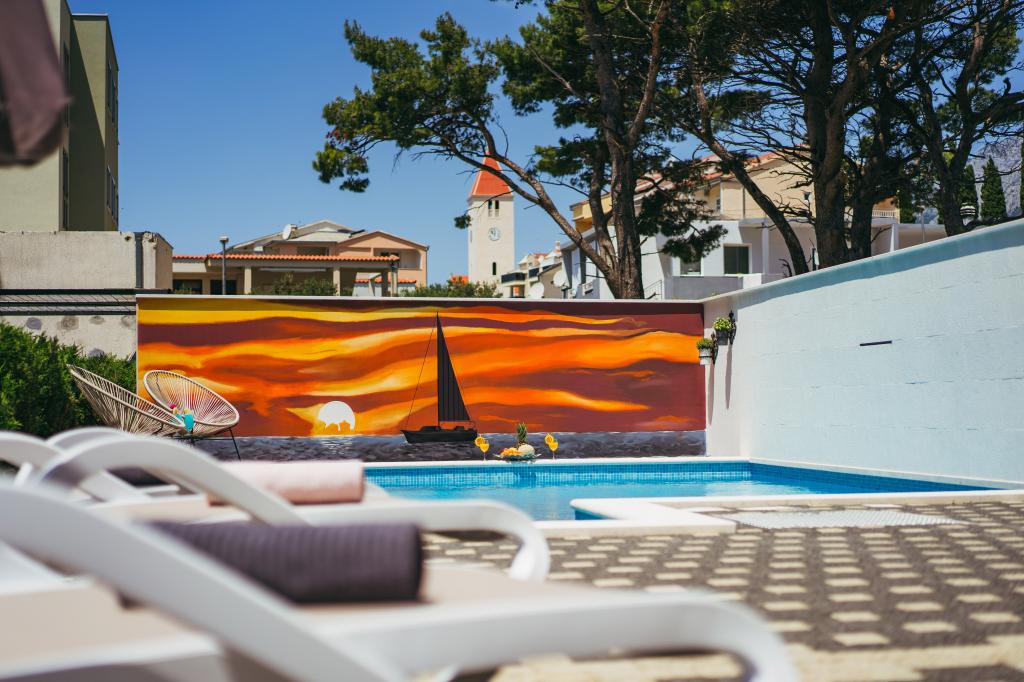 Ausgestattete und moderne Wohnung mit Pool in einem kleinen Dorf Promajna. Kostenlose Parkplätze in der Unterkunft. Die Wohnung befindet sich 80 Meter vom Meer entfernt. In der Nähe des Hauses (150-300 m) gibt es ein Lebensmittelgeschäft, eine Einrichtung mit Obst und Gemüse, Restaurants, Cafés und einen Souvenirladen. Was Sie noch tun können, ist Fahrräder zu mieten und entlang der Küste zu nahe gelegenen Orten wie Baska Voda, Brela, Bratus zu fahren. Pomajna ist bekannt für seine wunderschönen Sonnenuntergänge und den langen Kieselstrand. Promajna liegt 7 km von der Stadt Makarska entfernt. Von Promajna aus haben Sie verschiedene Möglichkeiten und Optionen für Bootsfahrten zu den Inseln wie Brač, Hvar, Korčula, Vis ... Sie haben auch die Möglichkeit, Ausflüge zum Berg Biokovo (Skywalk) und Rafting auf dem Fluss Cetina zu unternehmen. Promajna ist sicherlich eine kleine Oase, um einen schönen, sonnigen und unbeschwerten Urlaub zu verbringen.