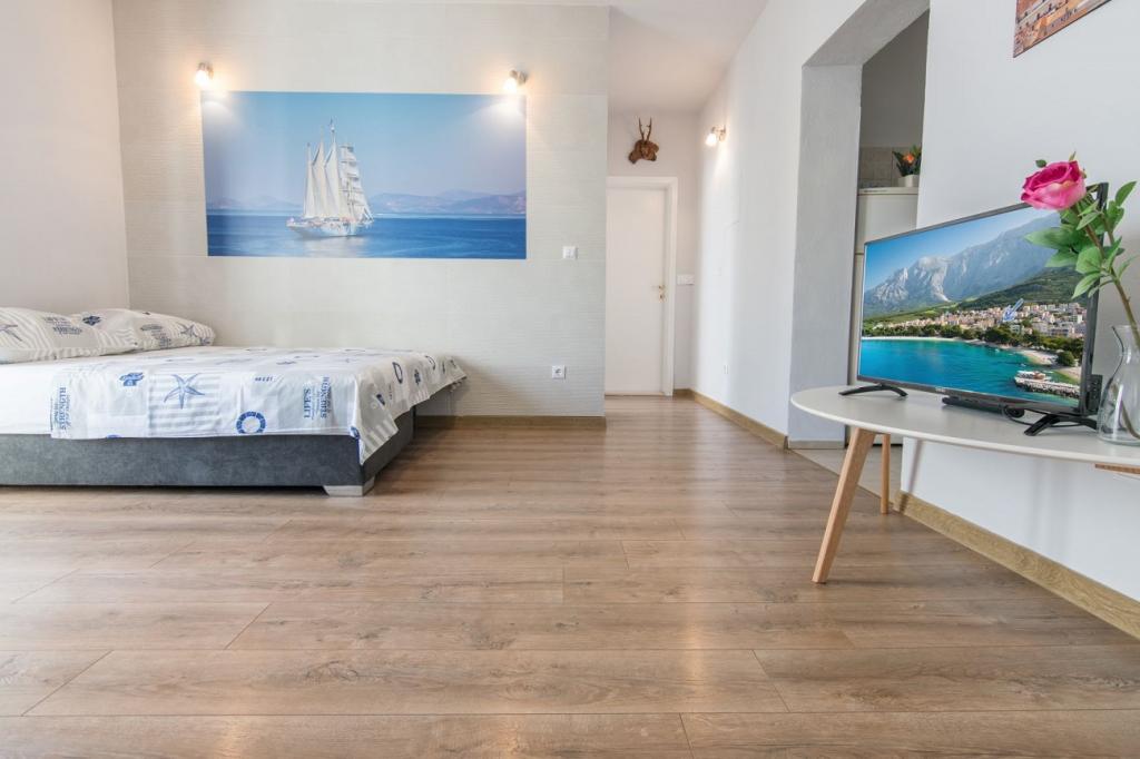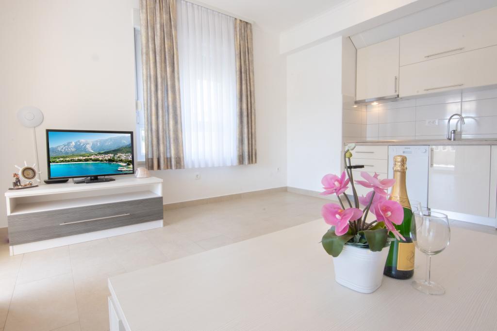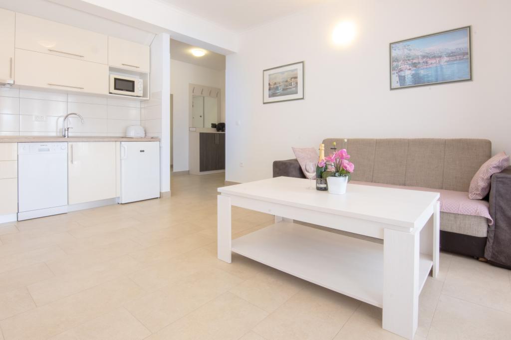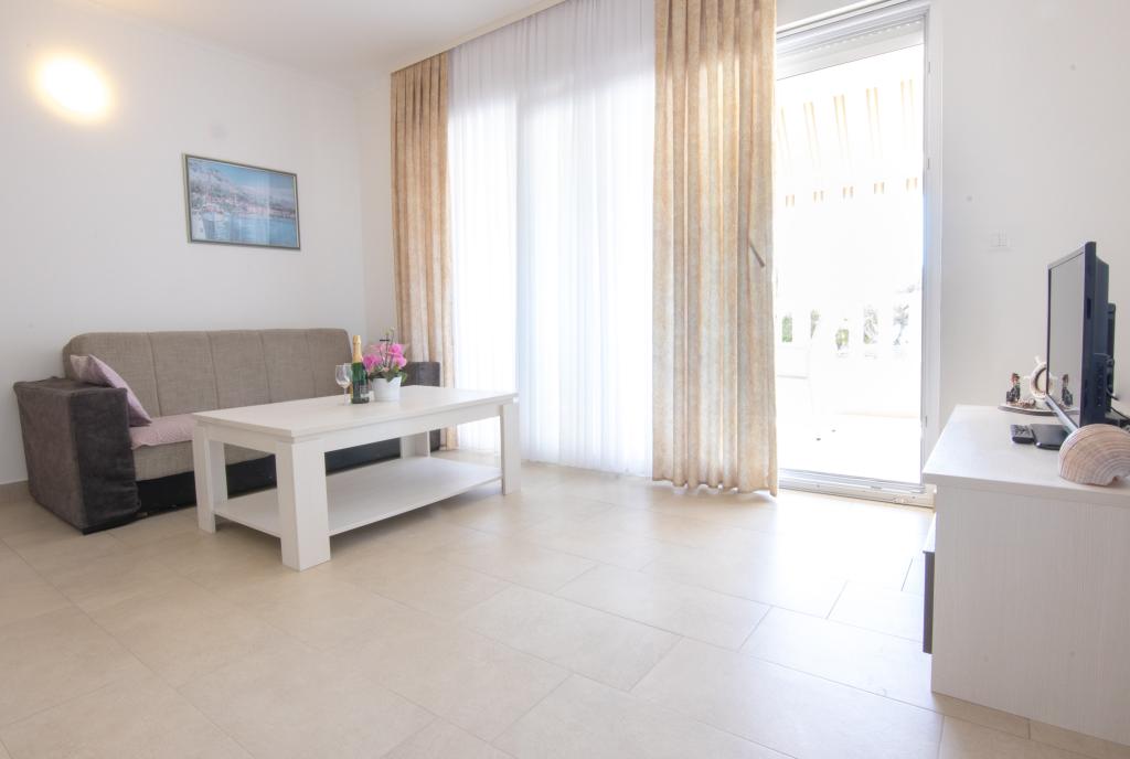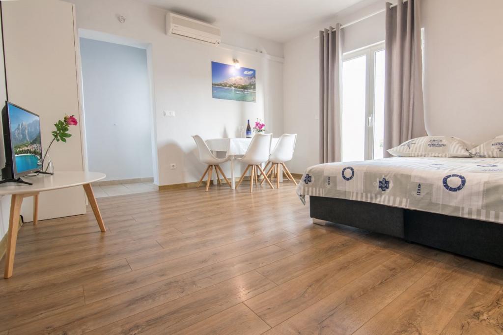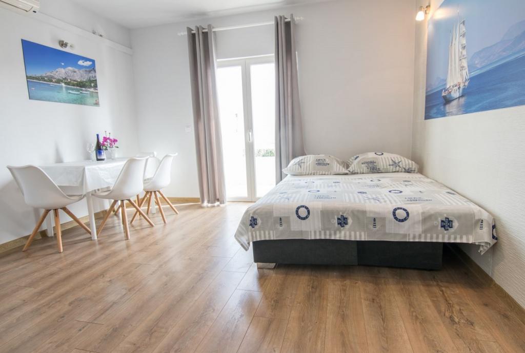 Die voll ausgestatteten Apartments Marinko befinden sich im Zentrum von Promajna, nur 30 m vom Strand und dem Meer sowie 100 m vom Geschäft, dem Markt und der Post entfernt. Die Apartments verfügen über eigene Parkplätze neben dem Gebäude. Der Strand hat natürlichen Schatten und kleine Kieselsteine, was ideal für Familien mit kleinen Kindern ist.