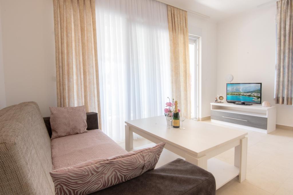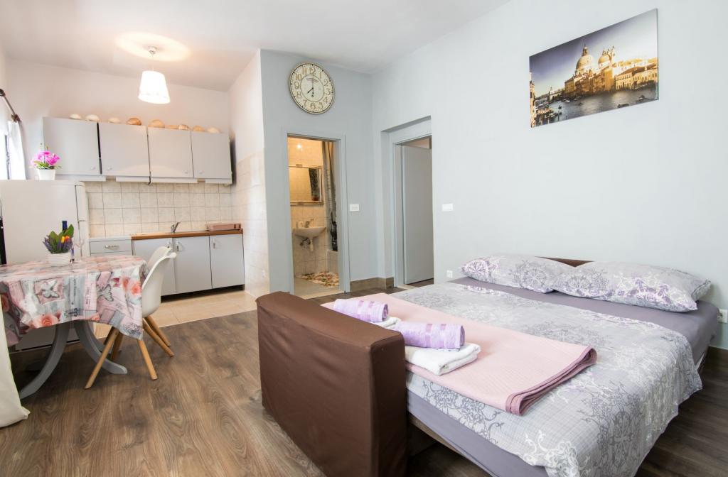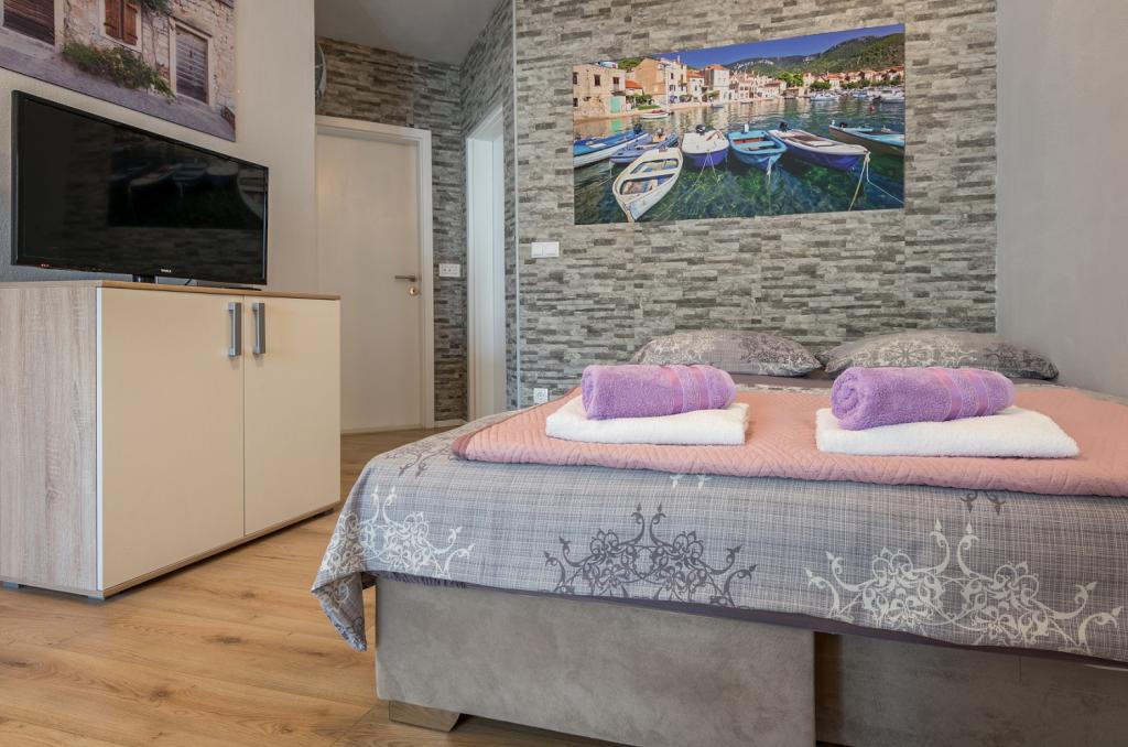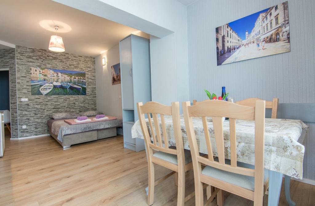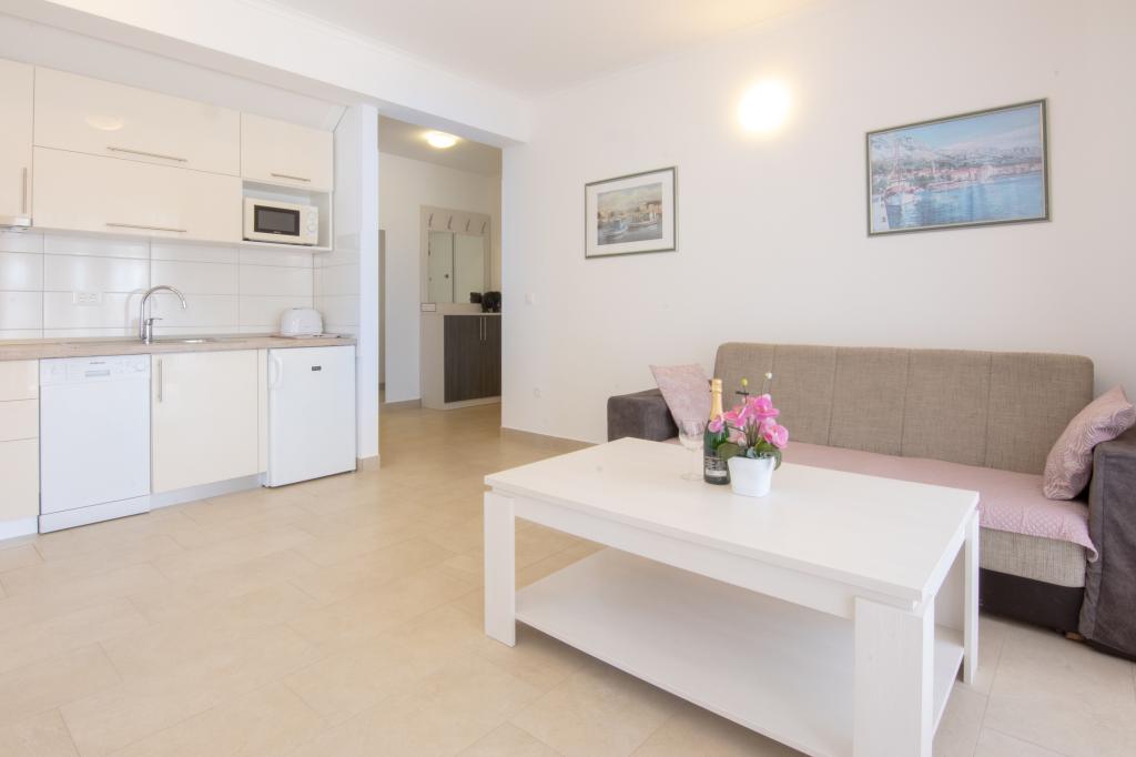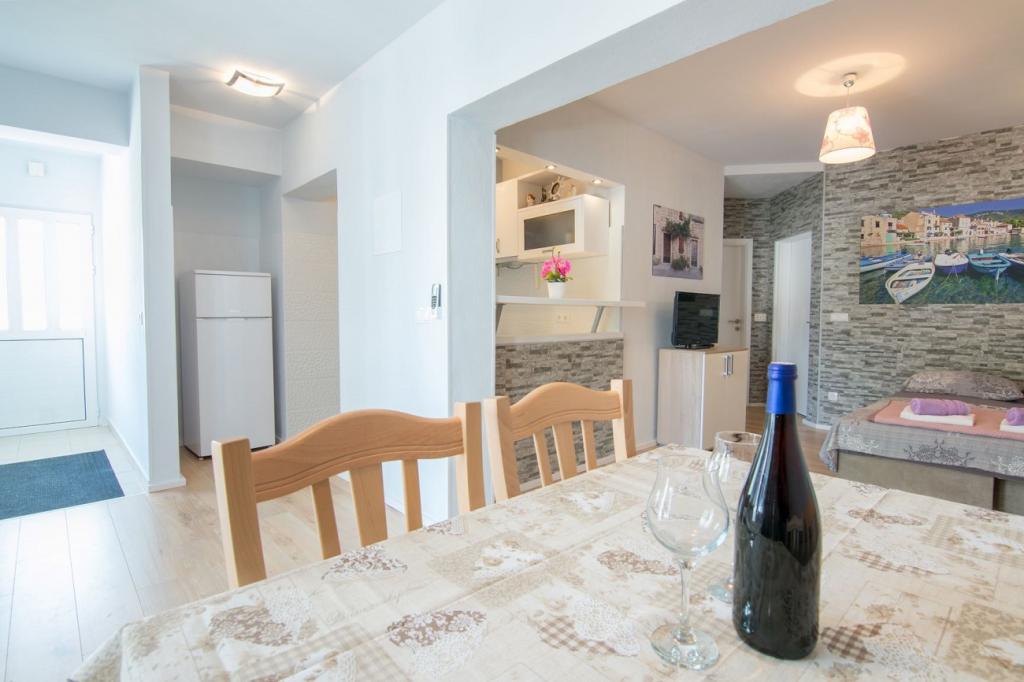 Die voll ausgestatteten Apartments Marinko befinden sich im Zentrum von Promajna, nur 30 m vom Strand und dem Meer sowie 100 m vom Geschäft, dem Markt und der Post entfernt. Die Apartments verfügen über eigene Parkplätze neben dem Gebäude. Der Strand hat natürlichen Schatten und kleine Kieselsteine, was ideal für Familien mit kleinen Kindern ist.