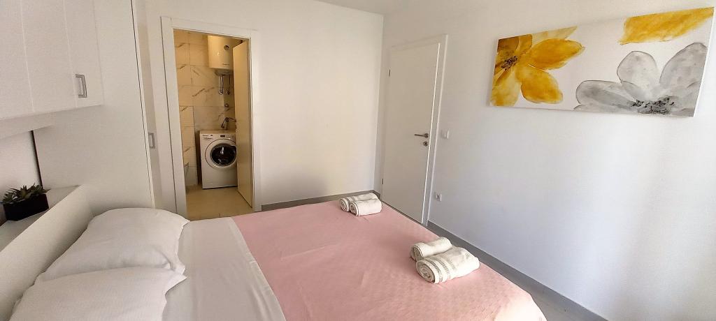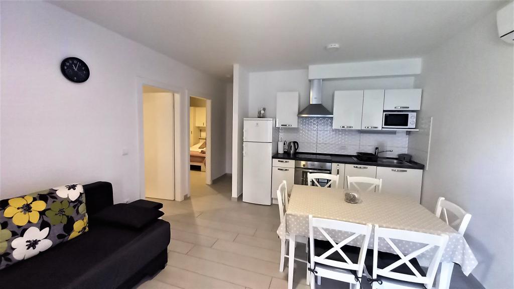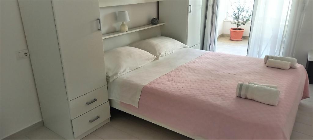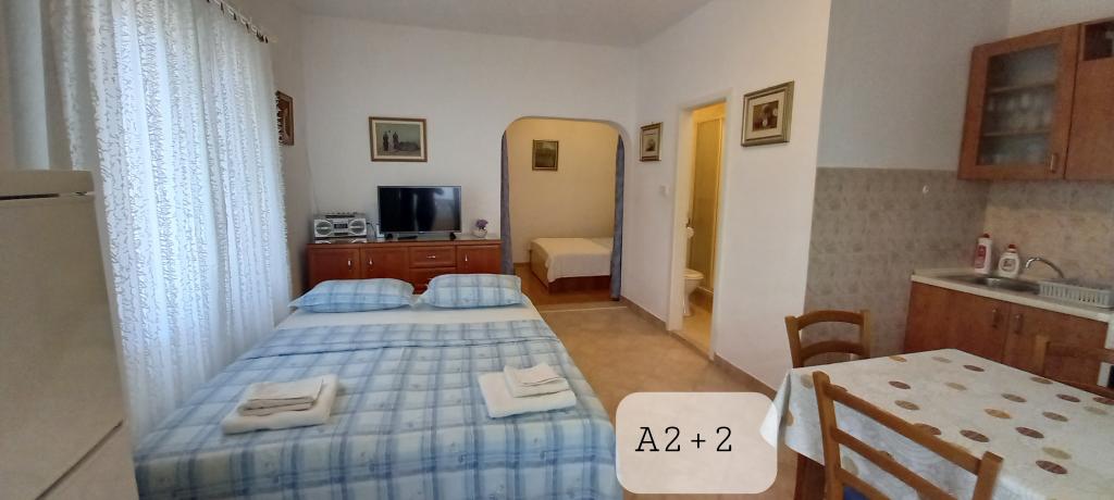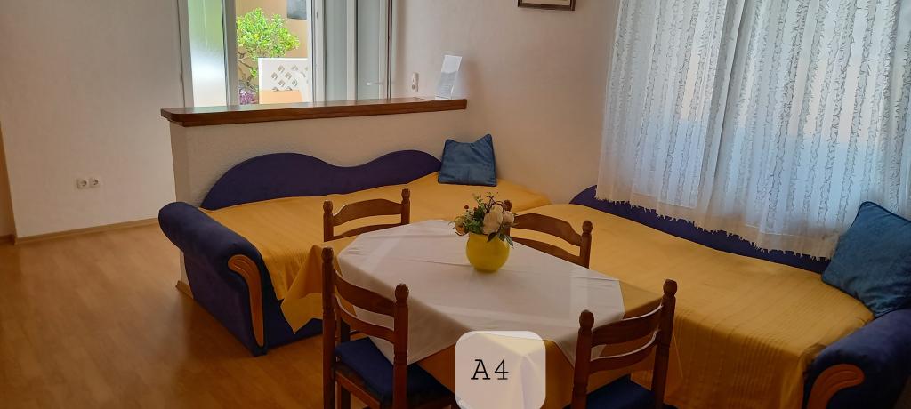 Die Apartments MIRA bestehen aus zwei Studios (für 2–4 Personen) und zwei Apartments (für 4–5 Personen). Sie befinden sich im Erdgeschoss und verfügen über Parkplätze direkt vor dem Gebäude. Der Hauptstrand ist 250–300 m entfernt. Die Studios sind standardmäßig mit Klimaanlage und kostenlosem WLAN (Glasfaseranschluss) ausgestattet und verfügen über TV, Mikrowelle, Waschmaschine und Geschirrspüler. Jedes Studio hat ein separates Schlafzimmer, das durch einen Vorhang vom Wohnzimmer abgetrennt ist. Apartment A4 (ID71793) bietet zwei Schlafzimmer und ein Badezimmer mit WC. Apartment A4+1 (ID71792) verfügt über zwei Schlafzimmer und zwei Badezimmer. Zur Standardausstattung gehören Klimaanlage, Sat-TV, kostenloses WLAN (Glasfaseranschluss), Mikrowelle und Waschmaschine. Alle Apartments und Studios bieten kostenlose Parkplätze direkt vor dem Gebäude. Der angegebene Preis für Apartment A4+1 gilt für vier Personen; für jede weitere Person wird ein Aufpreis von 10 Euro berechnet.