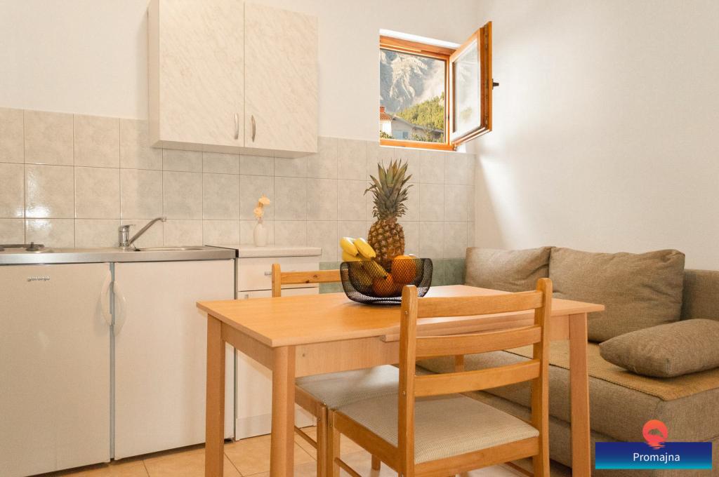 Mit den Apartments Turić ist der Sommer einfach. Die Anlage liegt in der Nähe des Hauptstrandes in Promajna, fernab vom Autolärm. Aus diesem Grund ist es eine ideale Wahl für diejenigen, die ohne unerwünschten Lärm nahe am Strand sein möchten. Alle Wohnungen verfügen über kostenfreies WLAN, Parkplatz, TV, Küche, Bad und Balkon. Auch die Apartments im 2. Stock bieten Meerblick. Im Hof gibt es einen gemeinsamen Grill mit Tischen und Stühlen. Ihre Gastgeber sind Anto und Lucija, die im Erdgeschoss des Gebäudes wohnen und für Sie da sind. Wenn Sie Fragen haben, können Sie uns gerne kontaktieren.