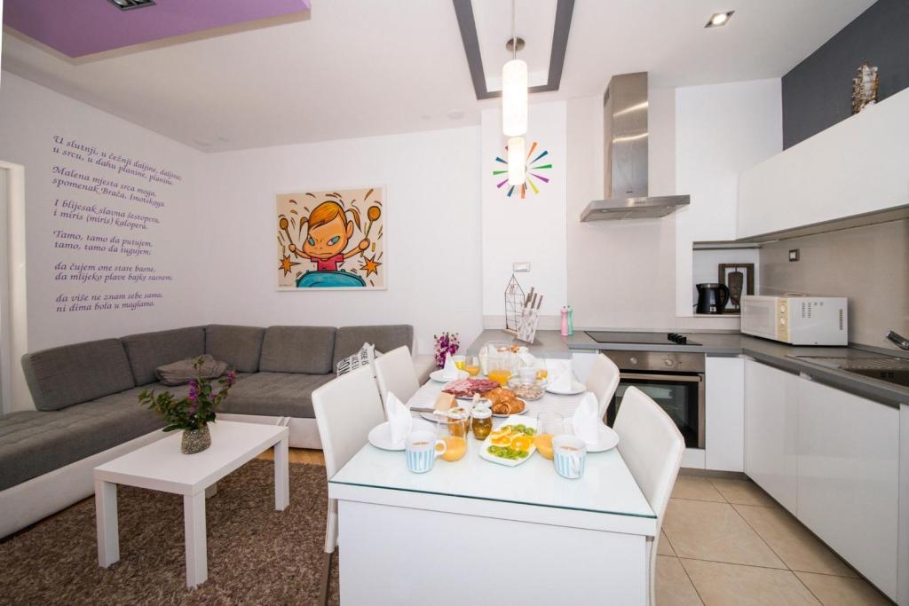 Wir bieten Unterkunft in unserem Haus in Promajna an der Küste von Makarska. Promajna liegt etwa 6 km von Makarska entfernt und in der Nebensaison leben etwa 250 Einwohner in der Stadt. In der Stadt selbst gibt es einen schönen großen Strand mit kleinen Kieselsteinen und riesigen Pinien für diejenigen, die gerne im Schatten sitzen, und westlich der Stadt gibt es mehrere kleinere, schönere und ruhigere Strände. Promajna ist ein großartiger Ort für einen ruhigen Familienurlaub, um das klare Meer und wunderbare Nachtwanderungen zu genießen. Unser Haus liegt etwa 300 Meter vom Meer entfernt und die Straße, die Sie hinunter zum Meer nehmen, endet genau an der Stelle, an der der Hauptstrand mit den kleinen Stränden im Westen zusammentrifft.