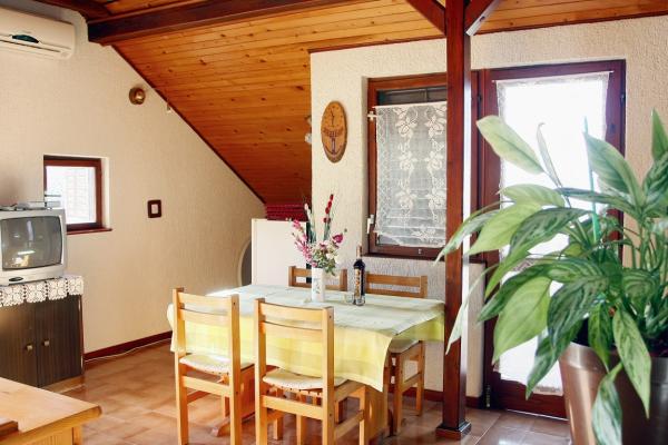 Apartment mit zwei Schlafzimmern für vier oder fünf Personen, voll möbliert und ausgestattet. Zwei Schlafzimmer bieten jeweils 2 Betten und es ist möglich, ein Zustellbett zu verwenden. Küche, Esszimmer, Wohnzimmer, Bad, Terrasse mit herrlichem Blick auf das Meer und den Berg Biokovo. Die Wohnung befindet sich im dritten Stock. Vor dem Haus stehen allen Gästen ein Garten und ein Grill zur Verfügung. Die Anlage ist nur einen kurzen Spaziergang vom Strand und dem Zentrum von Promajna entfernt. Alle anderen notwendigen Einrichtungen befinden sich in unmittelbarer Nähe.