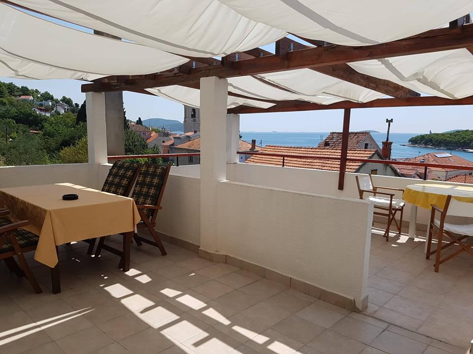 Ferienwohnung für 4 Personen in ruhiger Lage in der Straße Prvić Luke, nur 100 m vom Zentrum entfernt. Die 50 m² große Wohnung befindet sich im 1. Stock eines Hauses und bietet Meerblick sowie einen separaten Eingang und eine 30 m² große Terrasse. Sie besteht aus einer geräumigen Wohnküche, einem Schlafzimmer, einem Badezimmer und einem Flur. Die Wohnung ist komplett ausgestattet mit Klimaanlage, Sat-TV, WLAN, Mikrowelle, Geschirrspüler, Waschmaschine, weiteren Haushaltsgeräten, Geschirr und Elektrogrill. Besonders interessant für Liebhaber zeitgenössischer kroatischer Malerei. Ein Kinderbett und ein Hochstuhl sind vorhanden. Die Terrasse ist mit einem Sicherheitszaun für Kinder und Haustiere gesichert.