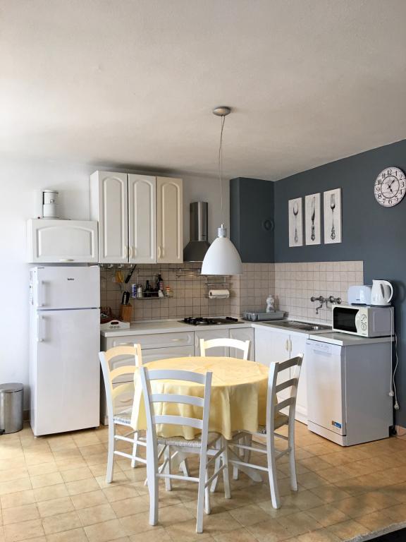 Komfortable Wohnung mit einer schönen Terrasse. Charmante Gastgeberin serviert uns einen leckeren Tintenfisch und Wein. ich empfehle