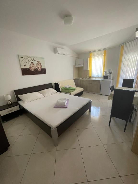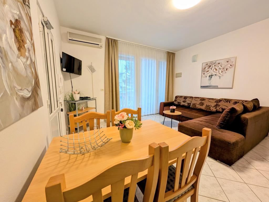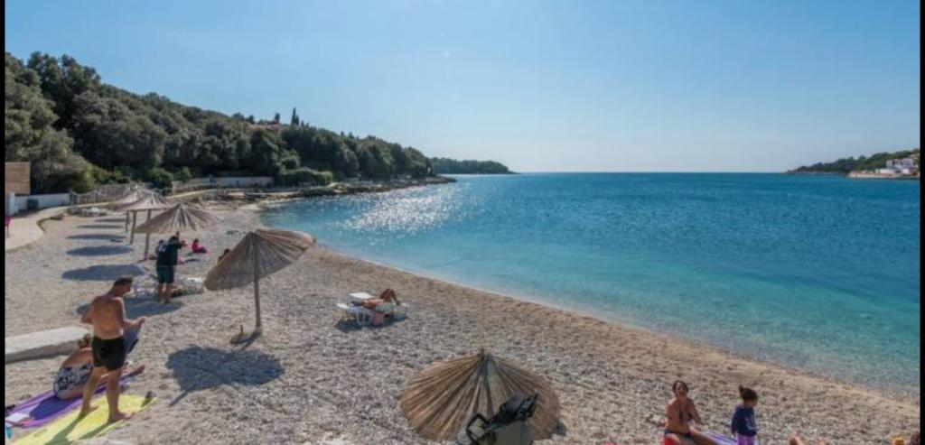 Novogradeni und möblierte Apartments in der sandigen Bucht. Wir sind 5 Minuten zu Fuß zum Strand. Nach Pula sind 3km entfernt, aber wir haben eine Bushaltestelle 50 Meter entfernt. In der Nähe sind viele Restaurants, Wasserpark und andere Unterhaltung.