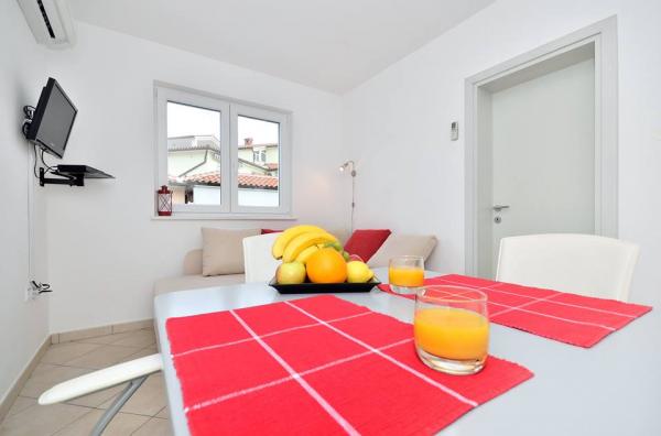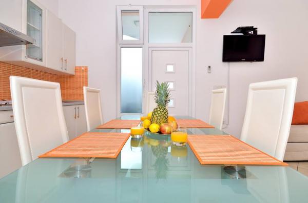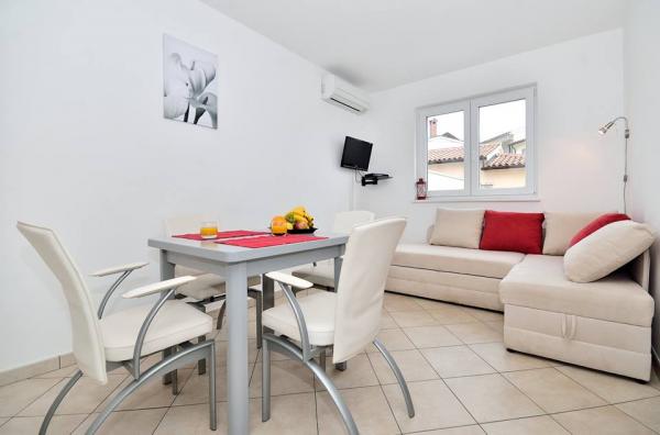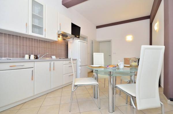 Wir bieten 5 luxuriös ausgestattete Apartments im Touristenort Stinjan, nicht weit von der Stadt Pula und dem Nationalpark Brijuni entfernt. Sie sind 500 m vom Meer entfernt, 500 m vom Zentrum von Stinjan, 7 km vom Zentrum von Pula, 11 km vom Flughafen Pula, 100 m vom Busbahnhof entfernt. Jede Wohnung verfügt über eine Küche im Wohnzimmer, Schlafzimmer, Terrasse, Bad, Klimaanlage, TV / SAT, WLAN, Grill, Parkplatz. Apartment 5 ist ein Studio.