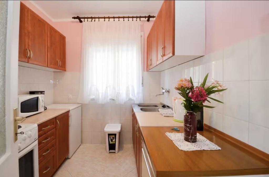 Das Studio-Apartment „Desiree“ liegt in einem ruhigen, grünen Viertel von Pula. Es ist 45 m² groß und befindet sich im Erdgeschoss eines Einfamilienhauses mit großem Garten und separatem Eingang. Das geräumige, helle und komfortable Apartment besteht aus Schlafzimmer, Küche, Wohnzimmer, Flur, Badezimmer und Terrasse. Zur Ausstattung gehören TV, Klimaanlage und kostenloses WLAN. Die Küche ist mit allen notwendigen Geräten ausgestattet, darunter Kühlschrank, Gefrierschrank, Backofen, Mikrowelle, Kaffeemaschine, Wasserkocher, Besteck und Geschirr, sodass Sie sich während Ihres Aufenthalts leckere Mahlzeiten zubereiten können. Im Garten vor dem Apartment können Sie entspannen und die Ruhe inmitten von Grün genießen. Das Studio-Apartment verfügt über ein komfortables Doppelbett (140 x 200 cm). Kostenlose Parkplätze stehen auf dem Grundstück zur Verfügung, und auch der öffentliche Parkplatz vor dem Haus ist kostenfrei. Ein großer Vorteil dieser Unterkunft ist die Nähe zum Stadtzentrum von Pula und zum Arena-Amphitheater, die in 20 Minuten zu Fuß erreichbar sind.