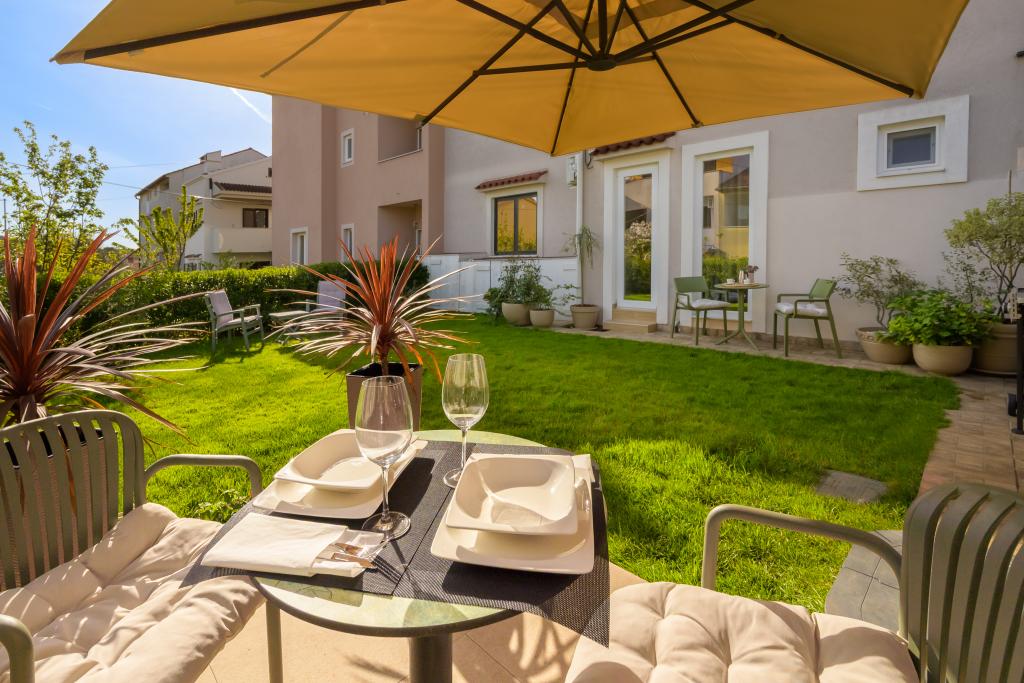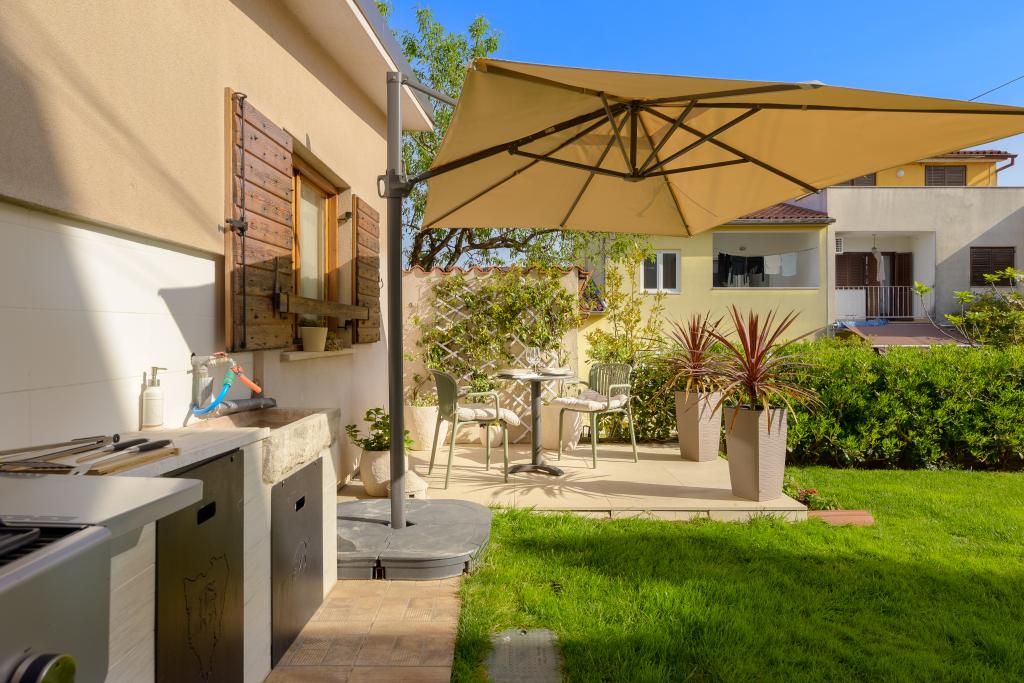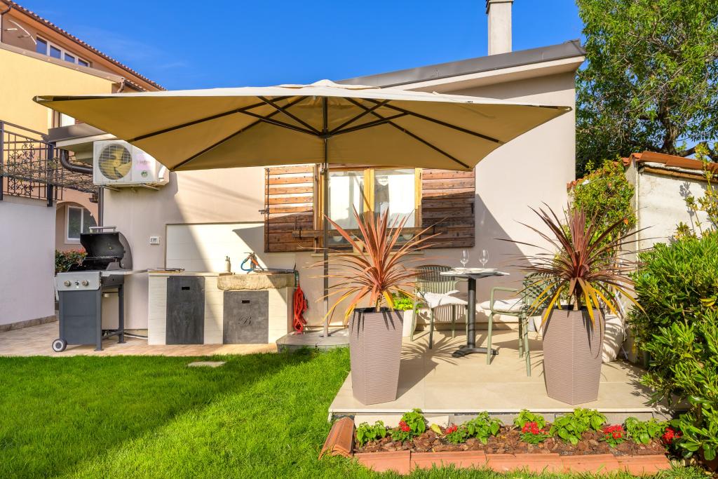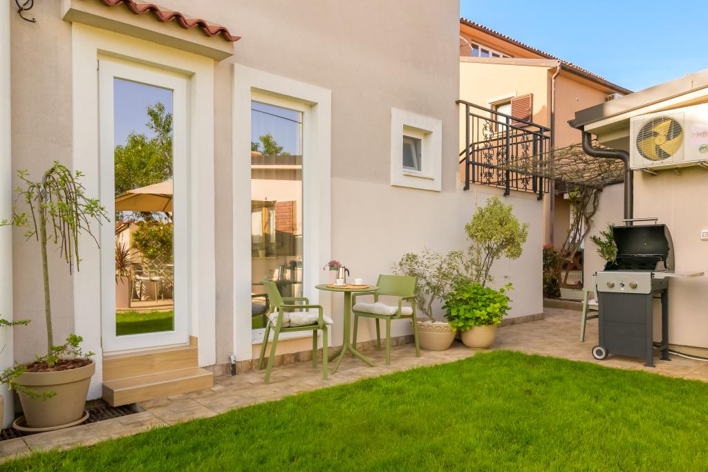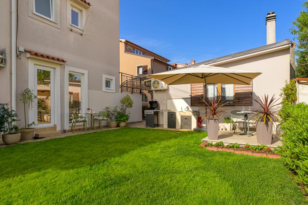 Die Wohnung befindet sich im Erdgeschoss eines Einfamilienhauses und wird exklusiv als einzige Wohnung vermietet. Sie ist neu und komplett ausgestattet: Geschirrspüler, Backofen, Kaffeemaschine, Toaster, Wasserkocher, Waschmaschine und Trockner, Besteck usw. Jedes Detail wurde mit viel Liebe zum Detail gestaltet, um Ihnen maximalen Komfort und einen unvergesslichen Urlaub zu ermöglichen. Die Wohnung verfügt über eine wunderschöne, grüne Terrasse, umgeben von einer Hecke, die Ihnen Privatsphäre und Ruhe bietet. Genießen Sie Ihren ersten Morgenkaffee auf dem grünen Rasen inmitten einer friedlichen Oase mit Vogelgezwitscher und Zirpen der Grillen. Für Ihre Mahlzeiten steht Ihnen ein großer, neuer Grill zur Verfügung. Ihr Auto parken Sie sicher auf dem kostenlosen Parkplatz im Haus. Die Wohnung liegt in einem ruhigen Teil des Stadtzentrums, umgeben von Wohnhäusern. Alle Sehenswürdigkeiten von Pula sowie Einkaufszentren, eine Apotheke, ein Krankenhaus, Restaurants und Cafés sind nur 100 bis 900 m entfernt und bequem zu Fuß erreichbar – ganz ohne Auto.