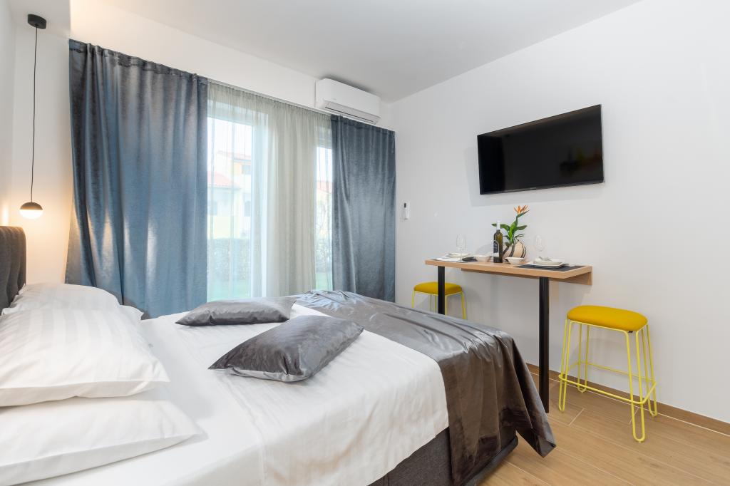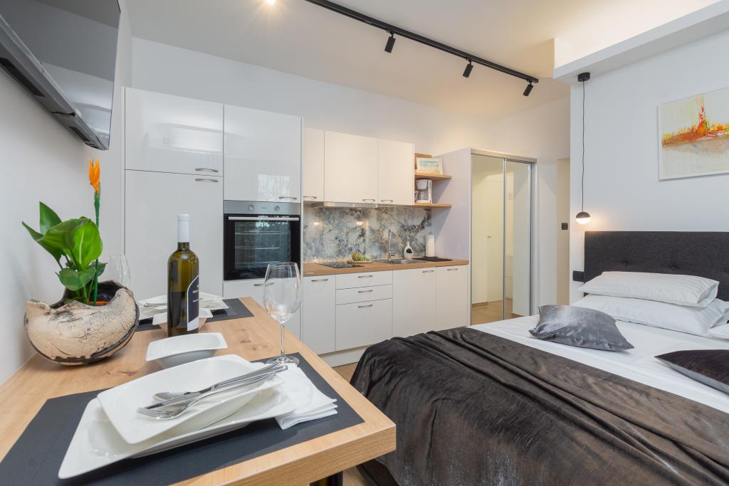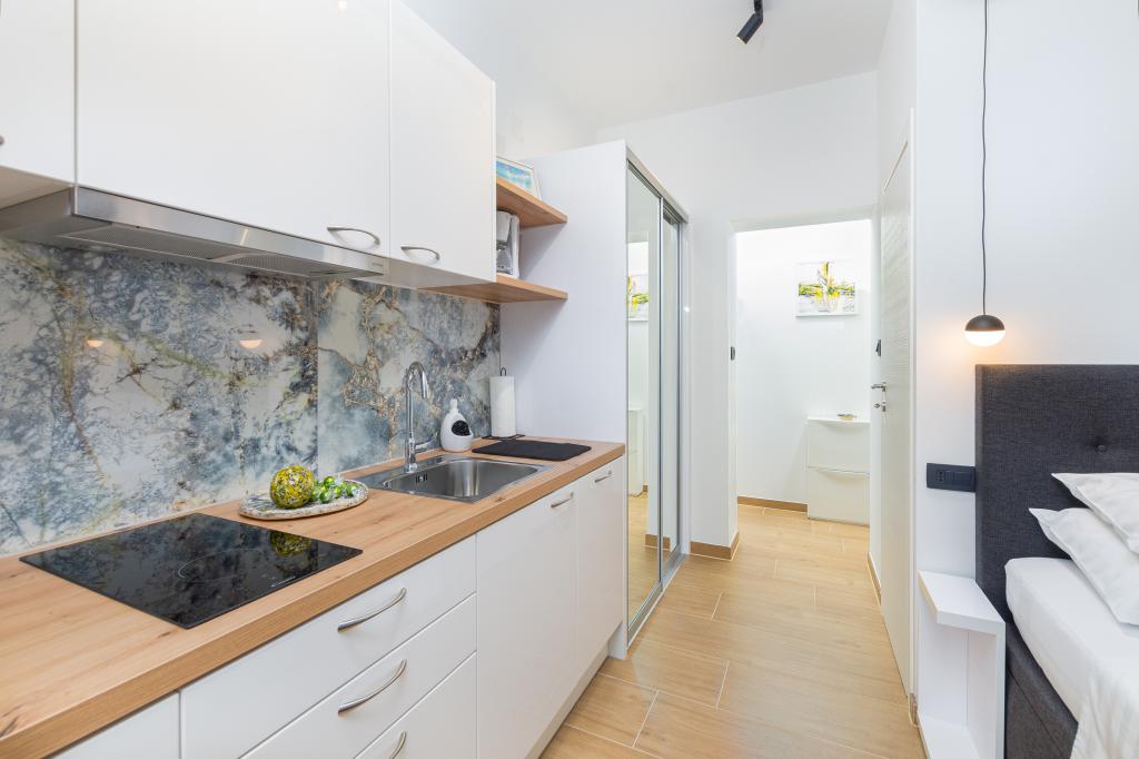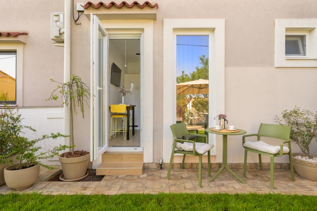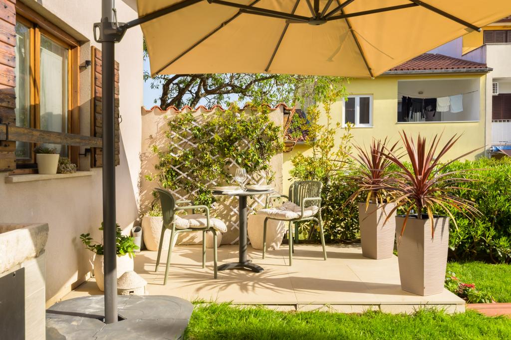 Die Wohnung befindet sich im Erdgeschoss eines Einfamilienhauses und wird exklusiv als einzige Wohnung vermietet. Sie ist neu und komplett ausgestattet: Geschirrspüler, Backofen, Kaffeemaschine, Toaster, Wasserkocher, Waschmaschine und Trockner, Besteck usw. Jedes Detail wurde mit viel Liebe zum Detail gestaltet, um Ihnen maximalen Komfort und einen unvergesslichen Urlaub zu ermöglichen. Die Wohnung verfügt über eine wunderschöne, grüne Terrasse, umgeben von einer Hecke, die Ihnen Privatsphäre und Ruhe bietet. Genießen Sie Ihren ersten Morgenkaffee auf dem grünen Rasen inmitten einer friedlichen Oase mit Vogelgezwitscher und Zirpen der Grillen. Für Ihre Mahlzeiten steht Ihnen ein großer, neuer Grill zur Verfügung. Ihr Auto parken Sie sicher auf dem kostenlosen Parkplatz im Haus. Die Wohnung liegt in einem ruhigen Teil des Stadtzentrums, umgeben von Wohnhäusern. Alle Sehenswürdigkeiten von Pula sowie Einkaufszentren, eine Apotheke, ein Krankenhaus, Restaurants und Cafés sind nur 100 bis 900 m entfernt und bequem zu Fuß erreichbar – ganz ohne Auto.