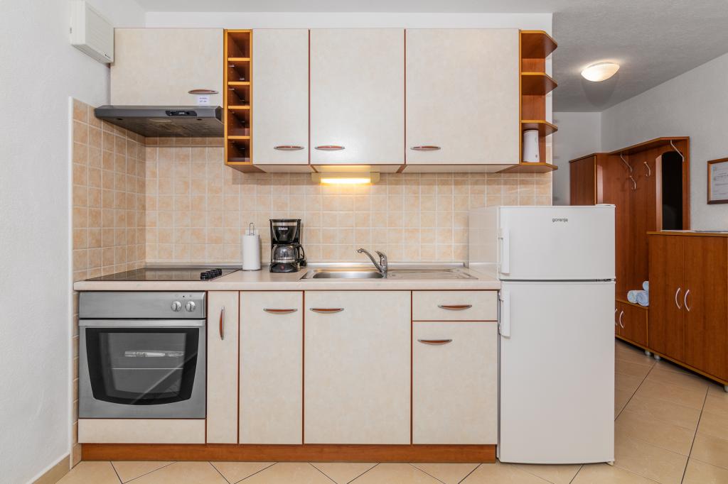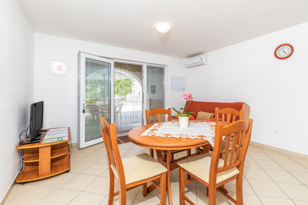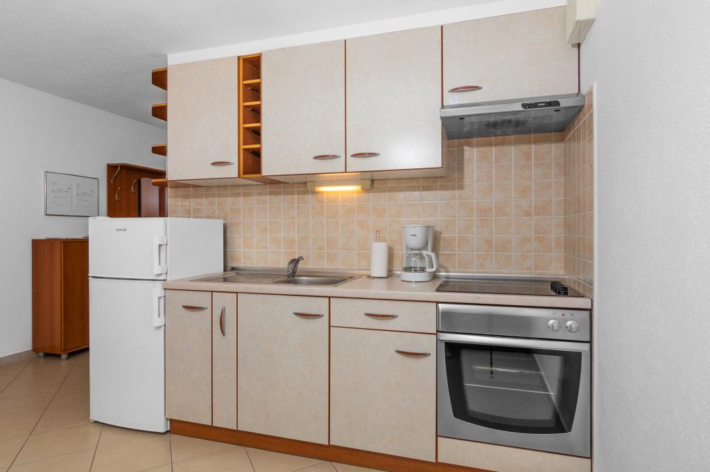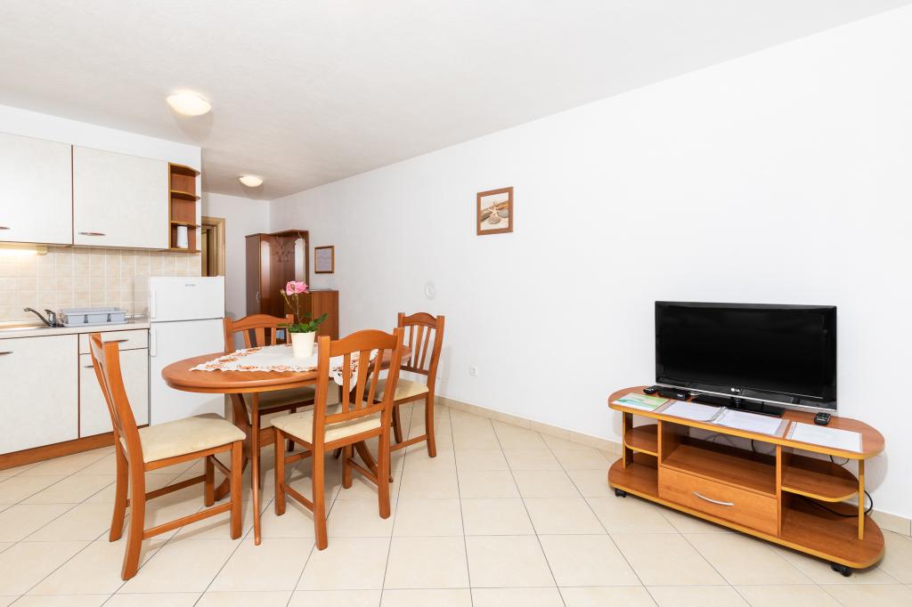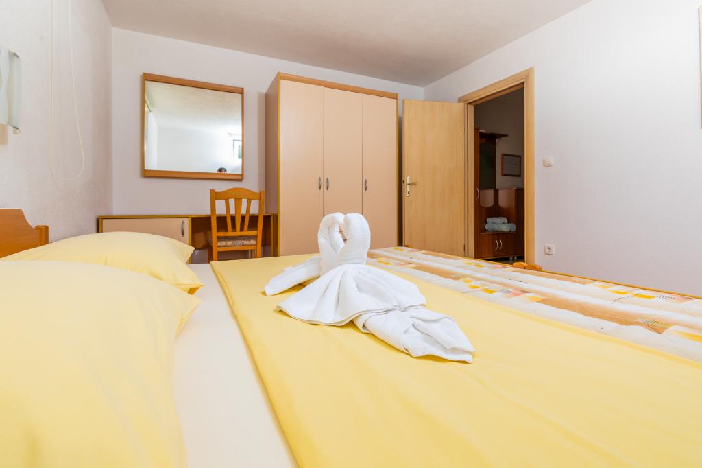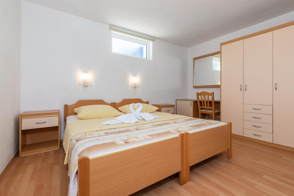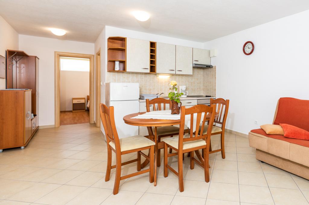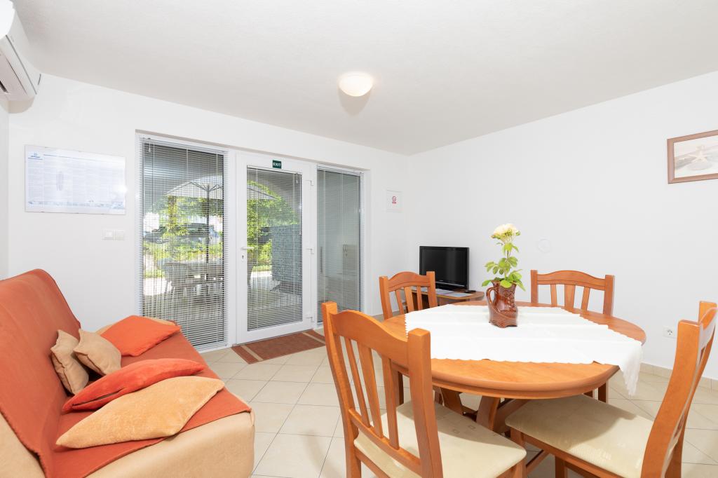 UnterkunftseinheitenUm eine Reservierung vorzunehmen, ist eine Anzahlung von 100 € per Banküberweisung (IBAN) erforderlich, der Restbetrag wird bei der Ankunft in bar beglichen. Die Anreise zur Wohnung ist ab 14:00 Uhr und die Abreise bis 10:00 Uhr möglich. Der Grundpreis im Apartment gilt für 2 Personen. Für jede weitere Person im Zustellbett erhöht sich der Preis um 12 €/Tag (1. Mai – 14. Juli, 21. August – 30. September) bzw. 15 €/Tag (15. Juli – 20. August). Jede Wohnung verfügt über ein Zustellbett für 2 Personen. Kinder bis 3 Jahre übernachten kostenlos, wenn sie kein Zustellbett nutzen. Bei einem Aufenthalt von bis zu 3 Nächten erhöht sich der Preis der Dienstleistung um 30 %. Die Kurtaxe ist im Preis inbegriffen.