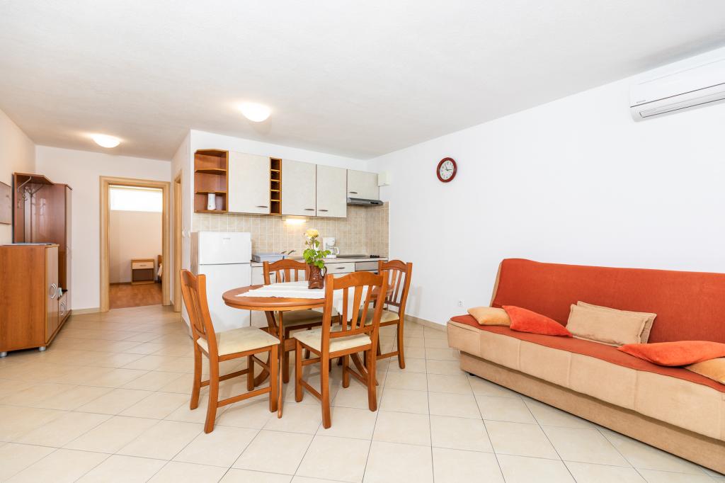 Apartment für 2 - 4 Personen in einem ruhigen Teil von Punat auf der Insel Krk. WLAN, Sat-TV und Klimaanlage sind in der Wohnung vorhanden. Nähe zu allen Einrichtungen: Strand, Geschäfte, Restaurants, Zentrum. Gesicherter Parkplatz im Schatten