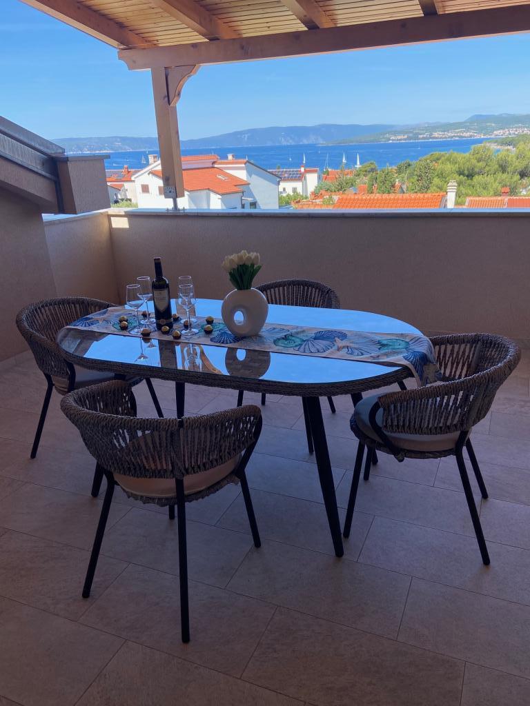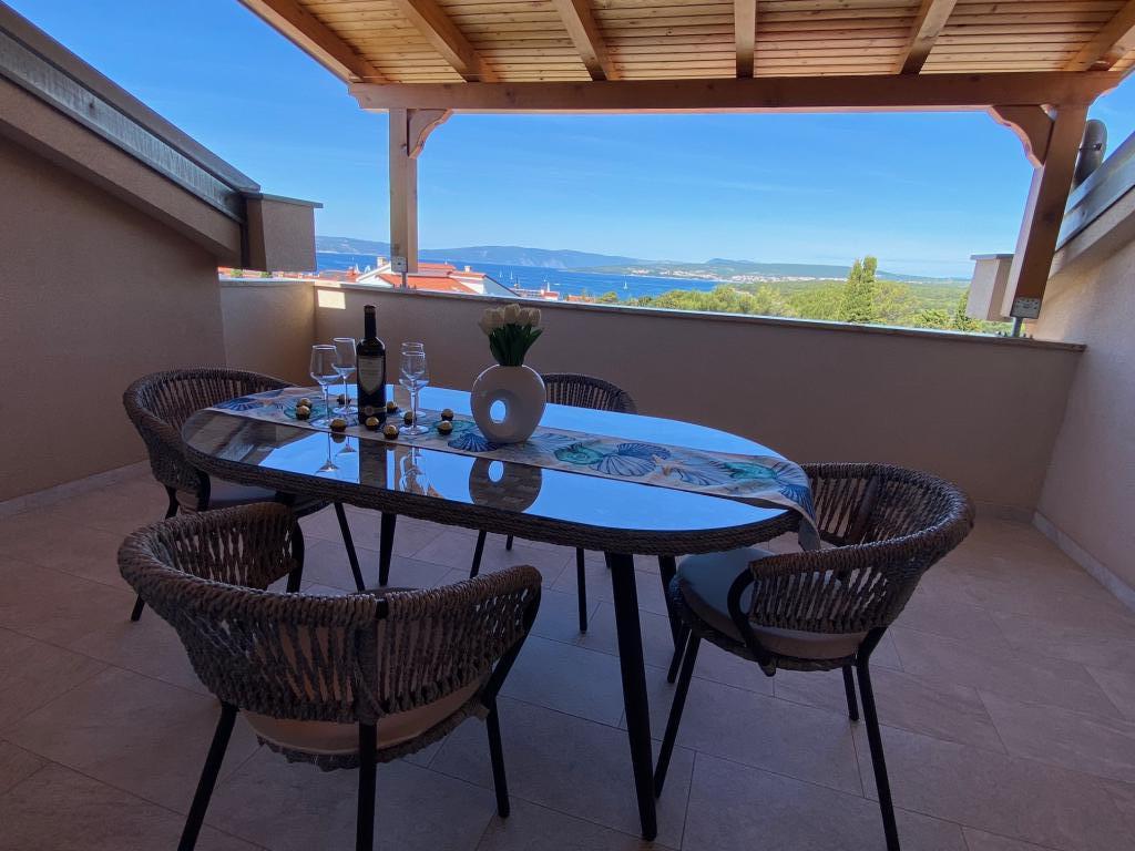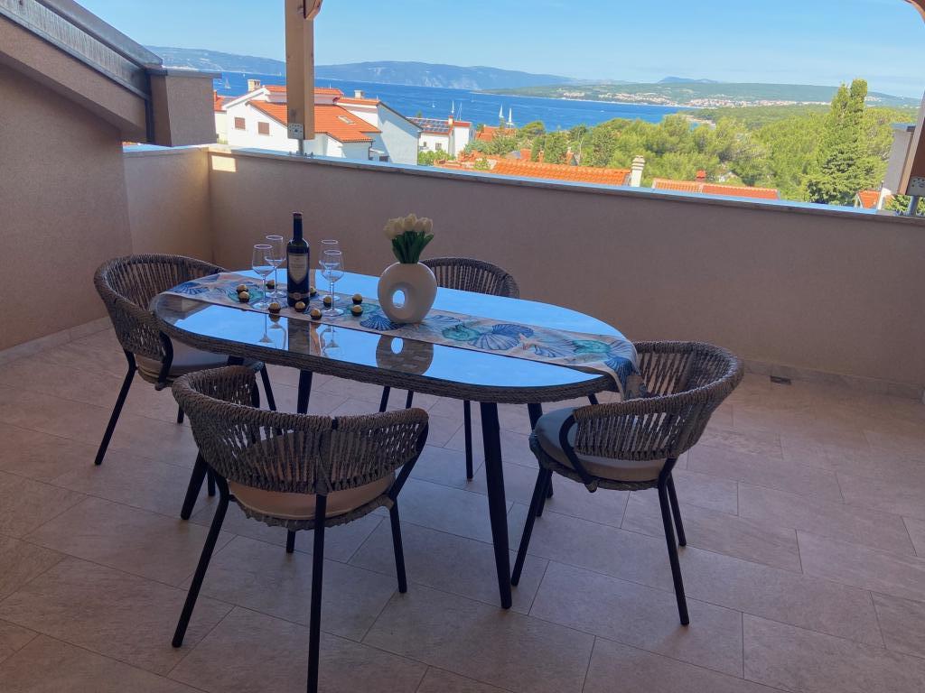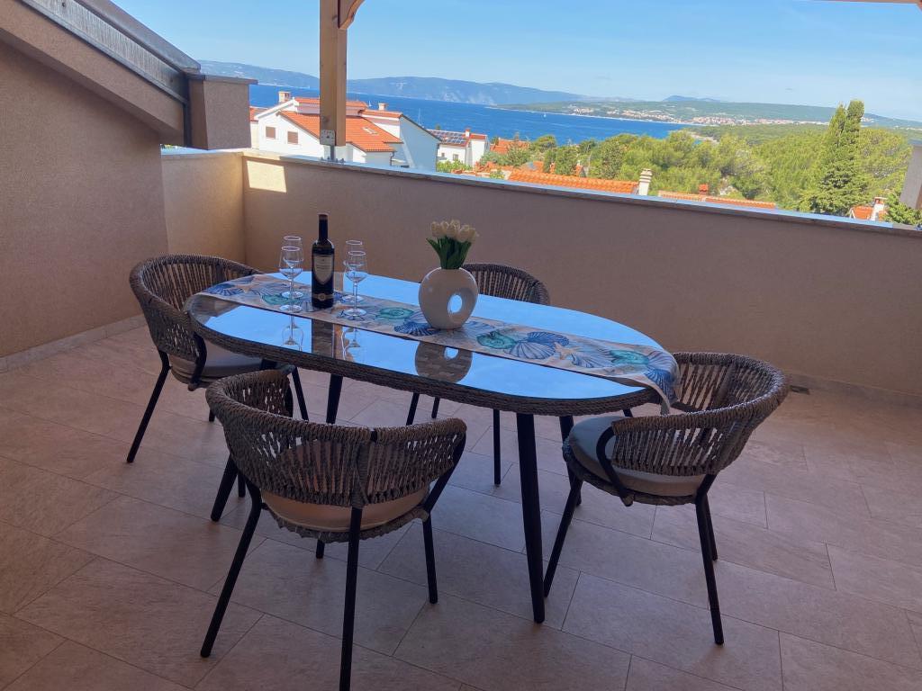 Ich vermiete Wohnungen in Puntu - Insel Krk. Freistehendes neues Haus, hat 4 Wohnungen. 2 große für 4 2 Personen. Eines auf dem Dachboden mit Meerblick und einem großen Erdgeschoss. 2 kleine Wohnungen für 2 1 Personen, eine im Dachgeschoss mit Meerblick und eine im Erdgeschoss. Die großen Apartments verfügen über zwei Schlafzimmer, ein Badezimmer mit Dusche und eine Küche mit Essbereich und eine große Terrasse. Die kleinen Apartments verfügen über ein Schlafzimmer, ein Badezimmer mit Dusche, eine Küche mit Essbereich und eine Terrasse Die Apartments sind mit Klimaanlage, Sat-TV, Spülmaschine, Waschmaschine (gemeinsam), Kühlschrank mit Gefrierfach, Backofen, Ceran-Kochfeld, Mikrowelle ... ausgestattet. Vor dem Haus gibt es einen Grill auf dem Holz. Eigener Parkplatz. Internet.