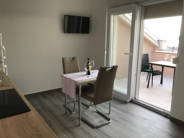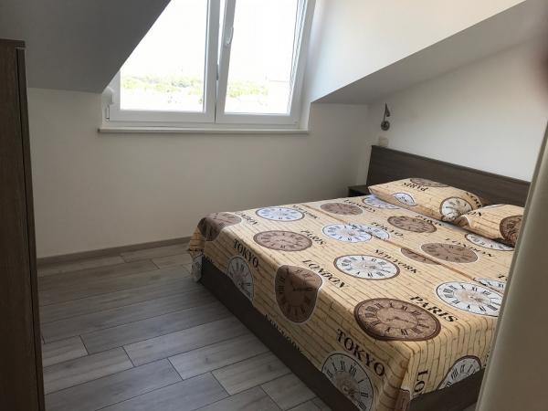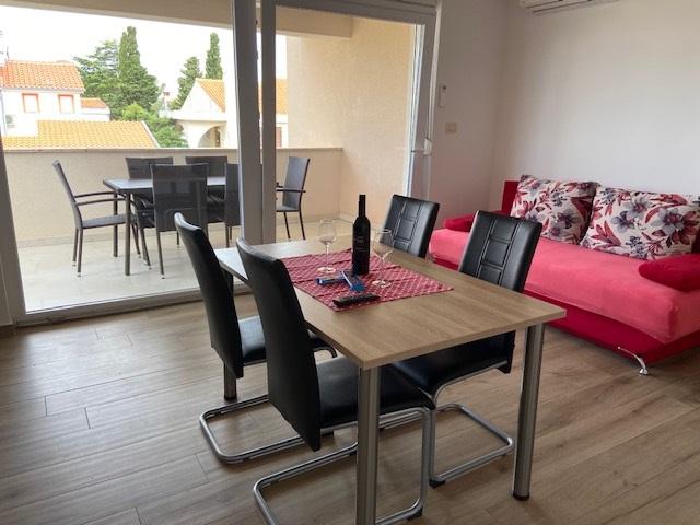 Wir haben als Familie ein 5-6 Personen Appartment gesucht und dieses ausgezeichnete Appartment gefunden. Die Lage ist gut, auch wenn man einige Meter zum Strand gehen muss, aber dafür ist die Wohnung echt Top. (Für uns waren es ca. 10-12 min, je nachdem wie schnell man geht. Wir können das jedem gerne weiter empfehlen. In diesem neuen Haus sind alle Zimmer sauber und gut ausgestattet. Eine Waschmaschine durften wir im Haus auch nutzen. Die Klimaanlage reicht für alle Zimmer im Juli auf jeden Fall sehr gut aus. Service ist sehr gut. Wir könnten uns das auch vorstellen nochmal hier Urlaub zu machen. Eine kleinigkeit haben wir vemisst: einen kleinen Tisch oder Ablage, wo man im Eingangsbereich die Schlüssel und Handys ablegen kann aber das ist bestimmt für jeden etwas anders. Das Highlight war, als die Geburtstagskinder eine eigene Torte bekommen haben, war eine echte Überaschung!!! Danke an Mirjana und Ihre Familie, wir konnten uns auch mit dem dem Vermieter-Familienmitglied auch auch Deutsch unterhalten, das war sehr hilfreich. Wir waren im Juli 2021 für 2 Wochen in diesem Appartment. Viele Grüße an Mirjana und die anderen von uns, Familie Janzen