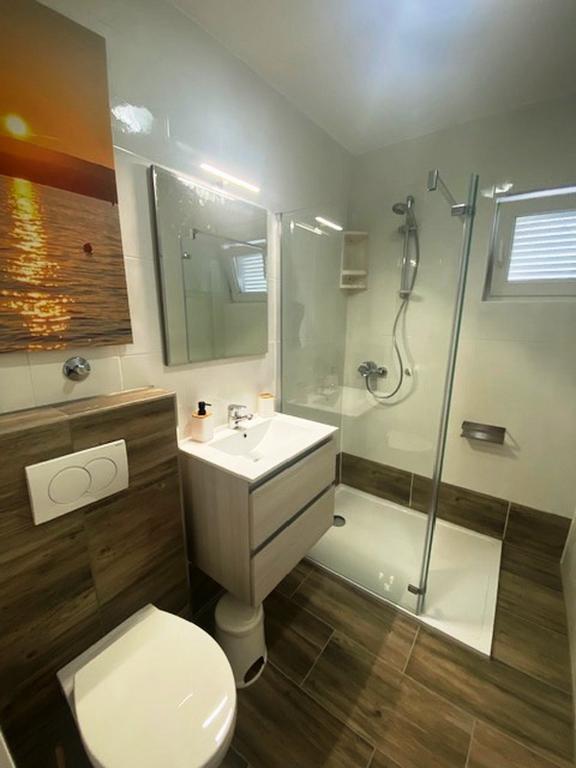 Die Apartments liegen 7 Gehminuten vom betonierten Strand und 9 Gehminuten vom Kieselstrand entfernt. Das Haus verfügt über 3 geschmackvoll eingerichtete Apartments mit Geschirrspüler, Klimaanlage, Internet und Sat-TV. Jedes Apartment hat einen eigenen Parkplatz.