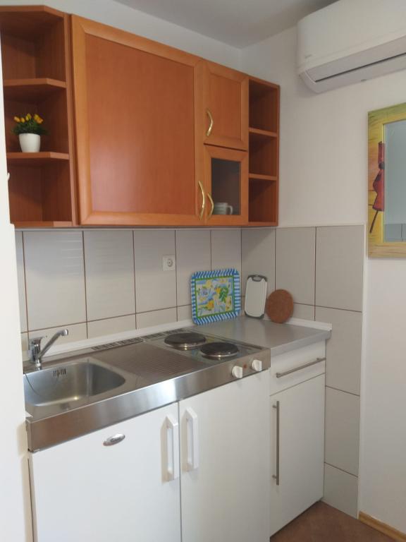 Die Apartments Ivo, eine Ferienwohnung der Familie Pravica, Kategorie 3*** oder 4****, sind neu gebaut, modern ausgestattet und verfügen alle über Klimaanlage und Internetzugang. Meerblick, nur zwei Gehminuten vom Strand entfernt, sicherer Parkplatz im schattigen Hof inmitten von Grün. Die Apartments Ivo bieten Ihnen voll ausgestattete Unterkünfte. Das große Apartment verfügt über 2+2 Betten im Schlaf- und Wohnzimmer. Außerdem gibt es eine Küche, einen Essbereich und ein Badezimmer mit WC. Weitere Apartments bieten Platz für 2 Personen mit einem Zustellbett sowie eine Küche und ein Badezimmer mit WC. Die großen Apartments verfügen über eine Terrasse mit Meerblick.