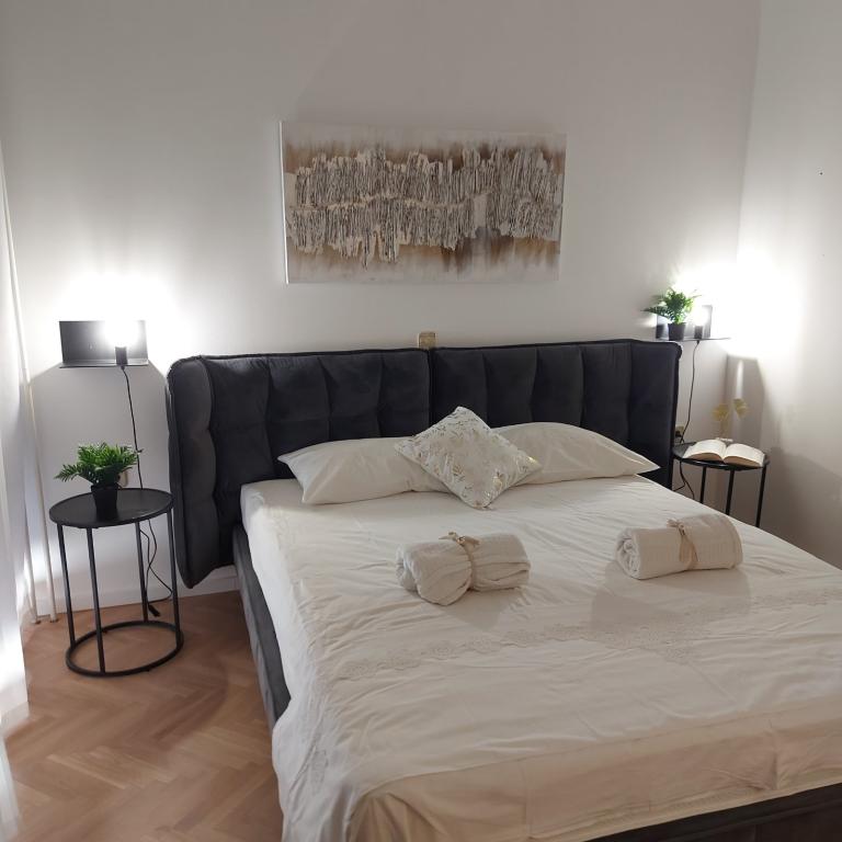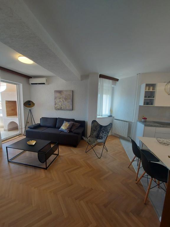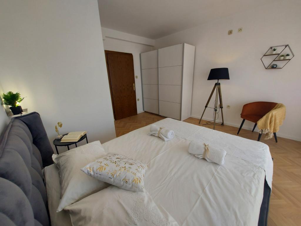Unsere Wohnungen befinden sich im ersten Stock eines Einfamilienhauses. Die Apartments sind neu eingerichtet, modern und funktionell ausgestattet (WI-FI, Klimaanlage, Spülmaschine) und sorgen für einen angenehmen und ruhigen Aufenthalt. Kostenlose geschlossene Parkplätze stehen im Hof des Hauses zur Verfügung. Im Hof gibt es einen Pavillon mit Grill, wo Sie den Schatten genießen können. Wichtige Annehmlichkeiten wie Strände, Restaurants und Geschäfte sind zu Fuß erreichbar.