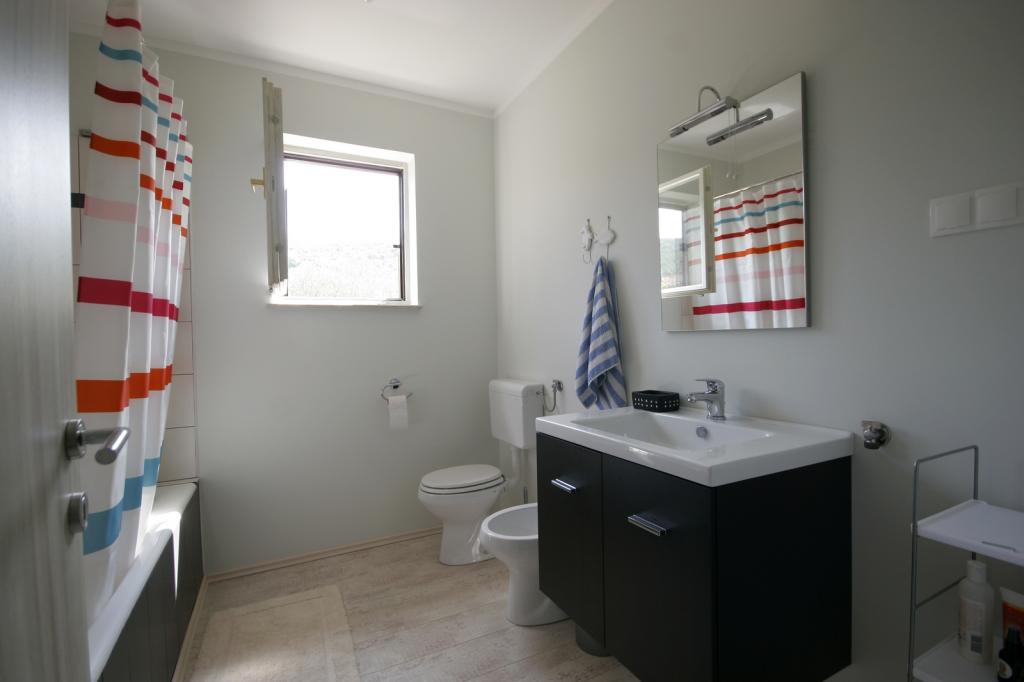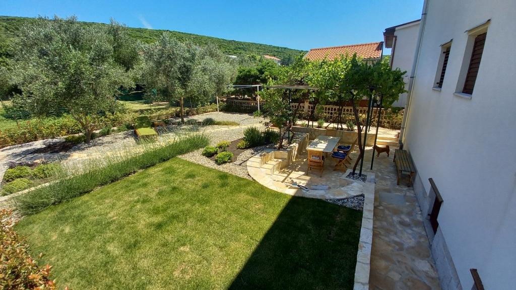 Neu renovierte, geräumige Wohnung von 100m2 befindet sich im ersten Stock eines Einfamilienhauses. Es besteht aus 2 Schlafzimmern, 2 Bädern, Küche mit Esszimmer und einem geräumigen Wohnzimmer, in dem das Sofa zu einem Zustellbett ausgebaut werden kann. Von Küche und Wohnzimmer gibt es einen Ausgang zu einer großen Balkon-Loggia. Auf der Rückseite des Hauses befindet sich ein neu renovierter Garten mit Grill und Liegestühlen sowie einer Solardusche. In der Nähe der Wohnung befindet sich ein Supermarkt und das Meer ist ca. 500 m entfernt, vom Zentrum von Punat sind es 10 Gehminuten.