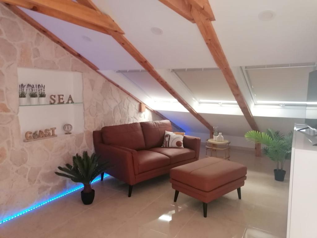 In den Apartments „Sea“ und „Sun“ verfügen Sie über eine Terrasse vor dem Apartment mit Meerblick und eine seitliche Terrasse, die von beiden Schlafzimmern aus zugänglich ist und ebenfalls Meer- und Bergblick bietet. Das Apartment „Sky“ bietet ebenfalls eine geräumige Terrasse mit herrlichem Meerblick. Ihnen stehen außerdem eine Waschmaschine und ein Trockner zur Verfügung. Nach vorheriger Anmeldung können Sie einen Holzkohle- oder Gasgrill nutzen.