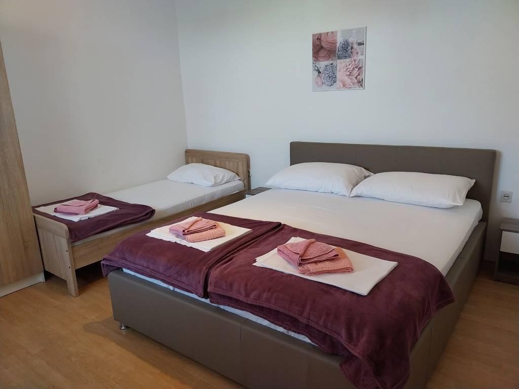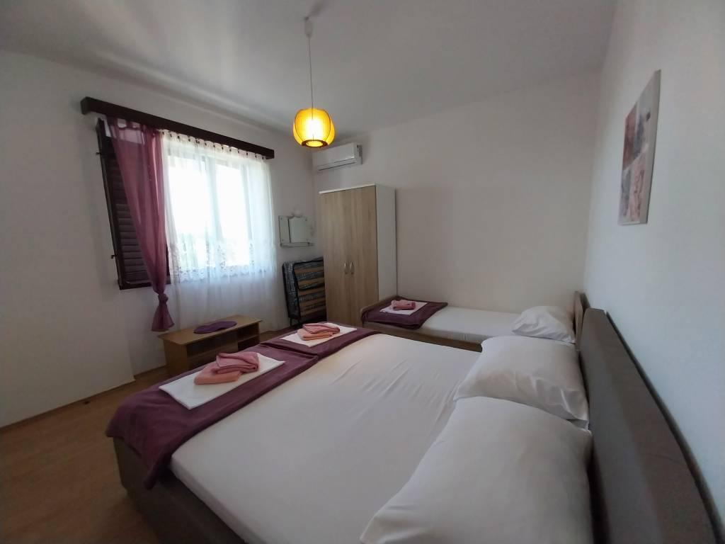 Wir befinden uns in der Nähe der Bucht Padova III auf der Insel Rab. Wir bieten unseren Gästen Unterkunft in Apartments in einem Haus etwa zehn Meter vom Meer entfernt. Oberhalb des Sandstrandes befindet sich unsere private Terrasse mit Sonnenliegen, und von den Balkonen aller Apartments bietet sich ein wunderschöner Blick auf das Meer. Im Innenhof unter den Olivenbäumen stehen den Gästen ein großer Grill und ein Esstisch sowie Schaukeln und eine Rutsche für Kinder sowie eine Tischtennisplatte zur Verfügung. Wir freuen uns auf Ihre Ankunft und wünschen Ihnen einen angenehmen Aufenthalt.