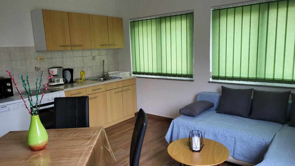 Die Apartments Padova 2 liegen in einem ruhigen Teil der Insel in der Nähe des Strandes Padova II, umgeben von einem Garten und viel Grün mit Zierpflanzen. Sie sind mit allem ausgestattet, was Sie für einen angenehmen und unbeschwerten Urlaub benötigen. Geschirrspüler, Waschmaschine, Mikrowelle, Wasserkocher, Toaster, Satellitenprogramme, WIFI... Die Apartments befinden sich im Erdgeschoss und verfügen über eine Terrasse und einen Garten, der zum Entspannen im Schatten von Olivenbäumen einlädt. Auf der Terrasse steht den Gästen ein Grill zur Verfügung. Der Strand ist 50 Meter entfernt und entlang der schönen Promenade am Meer ist die Altstadt von Rab in 20 Minuten zu erreichen. Für Liebhaber von Bootsfahrten gibt es in unmittelbarer Nähe ein Taxiboot. Das Parken befindet sich neben den Apartments und ist kostenlos.