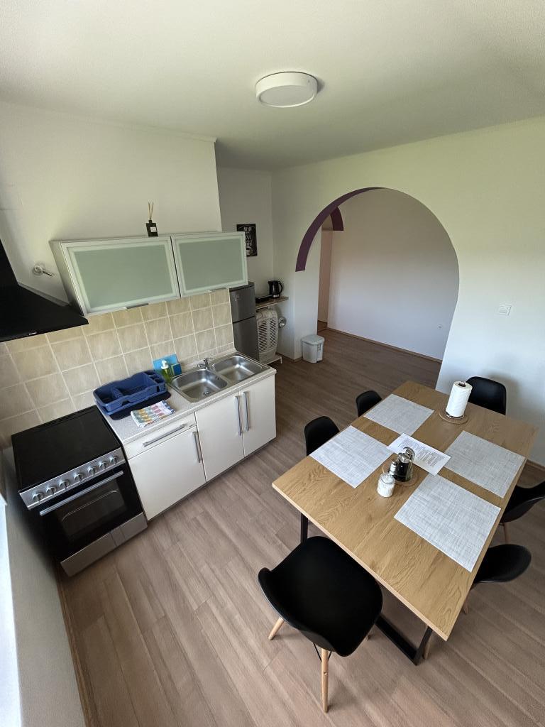 Unser komfortables Apartment mit zwei Schlafzimmern befindet sich im schönen Banjol, nur 8-10 Gehminuten vom schönen Sandstrand entfernt. Das Apartment verfügt über: Schlafzimmer 1: Bequemes Doppelbett mit sauberer Bettwäsche, IKEA Poang, Kommode, Frisiertisch, Fernseher Schlafzimmer 2: Ausgestattet mit zwei bequemen Ausziehbetten von Ikea Hemnes und sauberer Bettwäsche, Schreibtisch, Fernseher Esszimmer: Geräumiges und helles Esszimmer mit großem Tisch und Meerblick. Küche: Voll ausgestattet mit allen notwendigen Geräten und Utensilien, um köstliche Mahlzeiten zuzubereiten. Badezimmer: Sauber und ordentlich, mit Handtüchern und grundlegenden Toilettenartikeln ausgestattet. Terrasse: Idealer Ort für den Morgenkaffee oder zum Entspannen am Abend bei einem Glas Wein. Weitere Annehmlichkeiten: Kostenloses WLAN Klimaanlage Streaming-Dienste in beiden Zimmern (Netflix) Waschmaschine Kostenlose Parkplätze im Gebäude Haustiere erlaubt Grill Kaffee und Obst