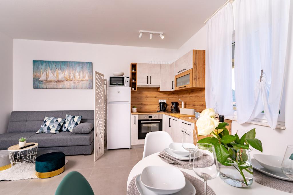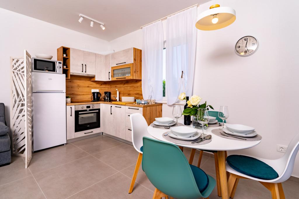 Komplett und modern eingerichtete Apartments in einem ruhigen Teil der Insel Rab. Die Apartments liegen 5 Gehminuten vom Strand von Grat und 10 Gehminuten vom alten Zentrum von Grat entfernt. Supermärkte sind ebenfalls 200 Meter vom Gebäude entfernt . Vor dem Gebäude gibt es einen großen kostenlosen Parkplatz und einen Kinderspielplatz.