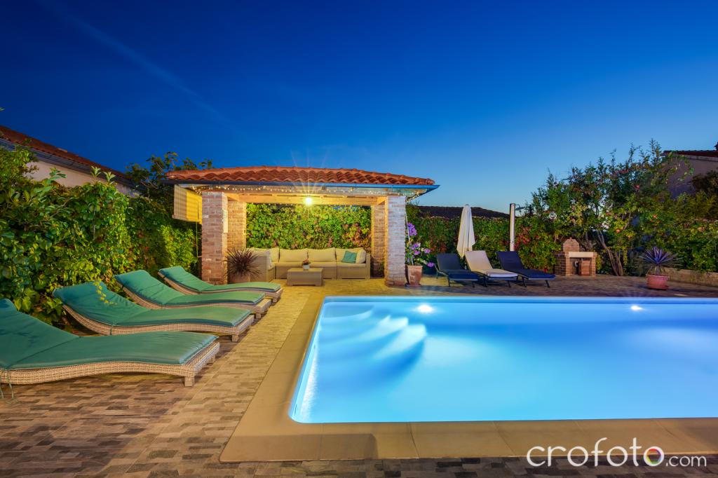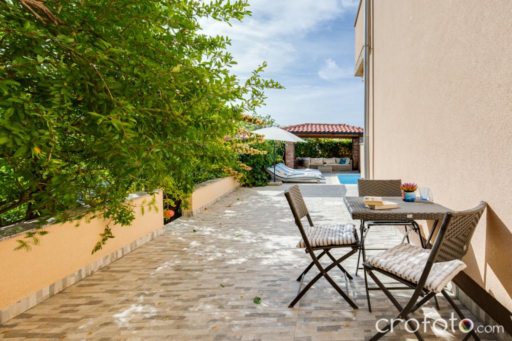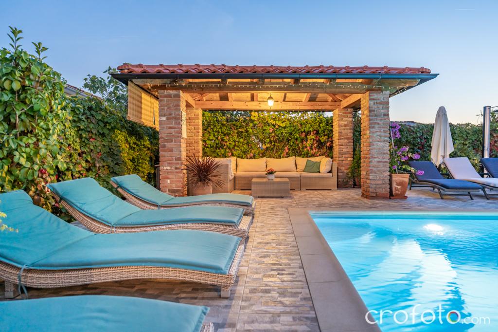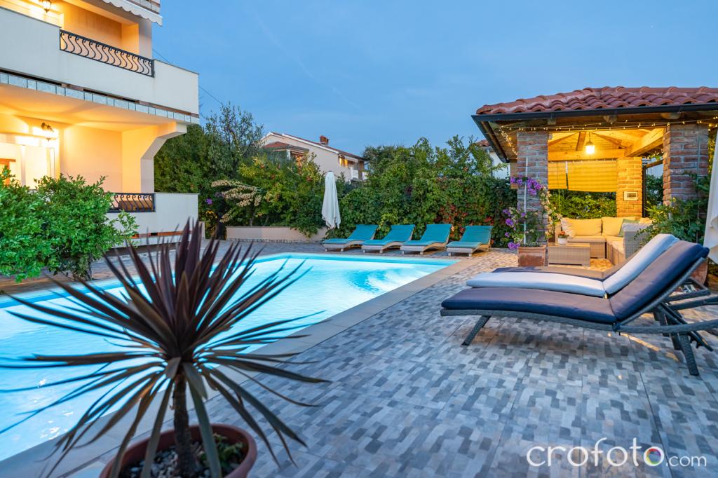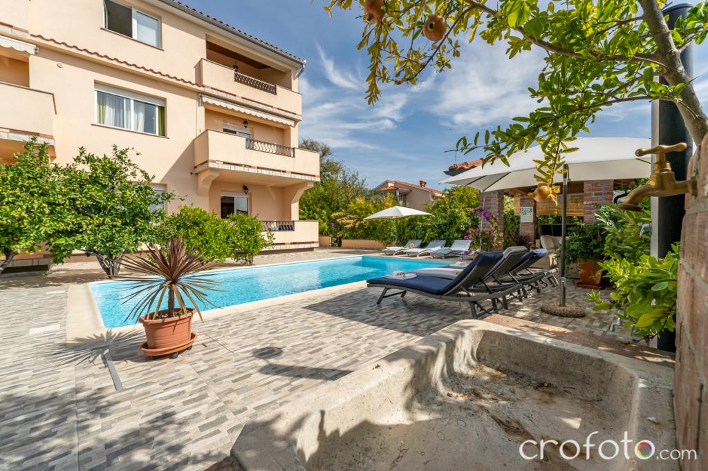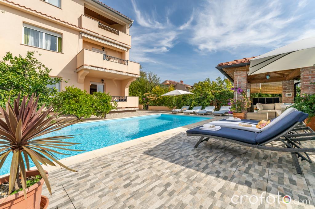 Die Ferienwohnungen Jurić bestechen durch ihre exzellente Lage in der Nähe des Zentrums und der besten Restaurants, unweit des Meeres und eines Parks. Besonders hervorzuheben ist die ruhige Lage fernab vom Trubel, mit eigenem Pool und Garten sowie einem separaten Pavillon mit Kamin und großem Tisch, den wir unseren Gästen gerne zur Verfügung stellen. Der ansprechend gestaltete und möblierte Poolbereich bietet bequeme Sitzgelegenheiten im Schatten eines gemütlichen Pavillons, komfortable Liegestühle und ist von üppigem Grün umgeben. Olivenbäume, mediterrane Kräuter, Zierpflanzen und Blumen verleihen dem Garten eine besondere Atmosphäre. Die Umgebung ist sehr angenehm und ideal für einen erholsamen Urlaub.