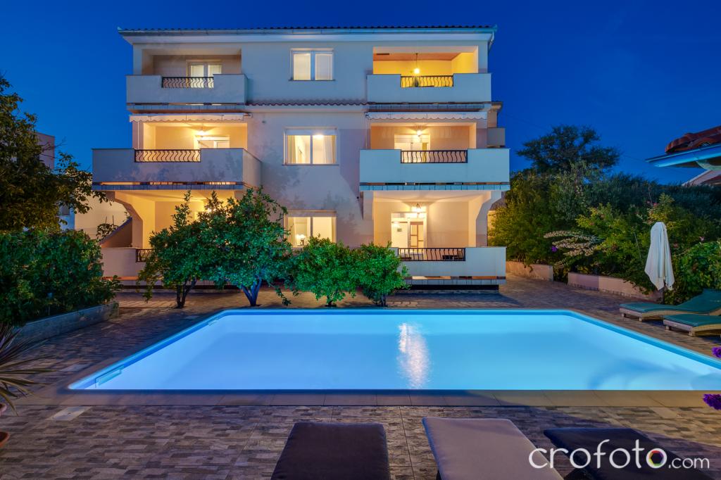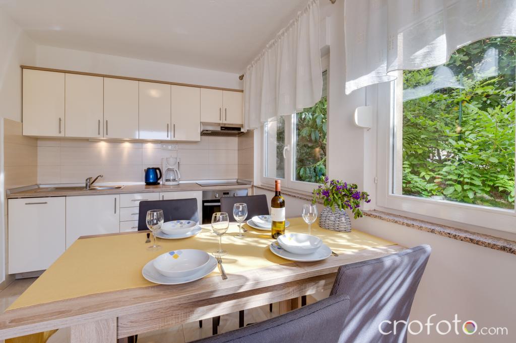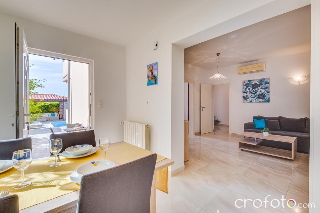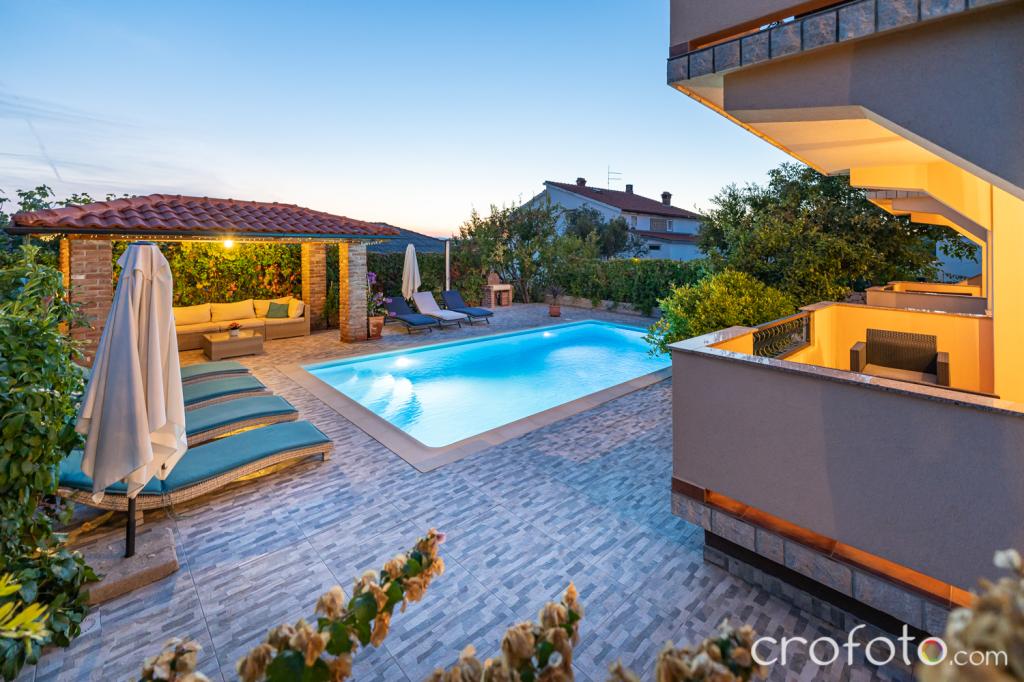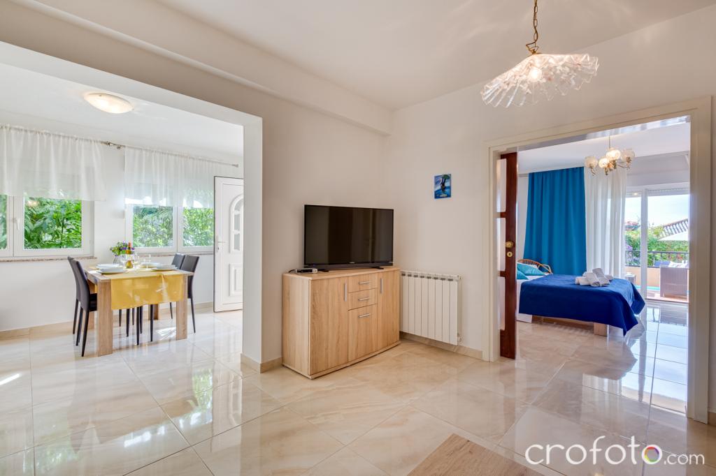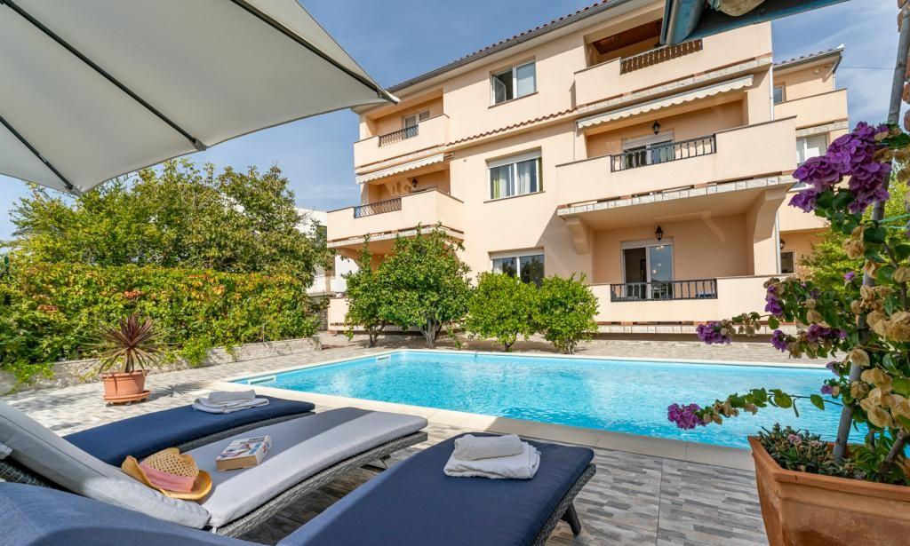 Die Ferienwohnungen Jurić bestechen durch ihre exzellente Lage in der Nähe des Zentrums und der besten Restaurants, unweit des Meeres und eines Parks. Besonders hervorzuheben ist die ruhige Lage fernab vom Trubel, mit eigenem Pool und Garten sowie einem separaten Pavillon mit Kamin und großem Tisch, den wir unseren Gästen gerne zur Verfügung stellen. Der ansprechend gestaltete und möblierte Poolbereich bietet bequeme Sitzgelegenheiten im Schatten eines gemütlichen Pavillons, komfortable Liegestühle und ist von üppigem Grün umgeben. Olivenbäume, mediterrane Kräuter, Zierpflanzen und Blumen verleihen dem Garten eine besondere Atmosphäre. Die Umgebung ist sehr angenehm und ideal für einen erholsamen Urlaub.