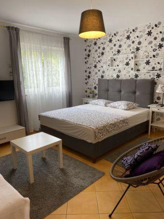 Das Haus ist ein unabhängiges Gebäude und befindet sich in einem ruhigen Teil der Stadt Rab, neben dem Komrčar-Park, nur 150 m vom Stadtstrand entfernt, dessen Promenade zur Altstadt von Rab führt. Das Gebäude ist 10 Gehminuten vom Zentrum und all seinen Einrichtungen wie Geschäften, einer Klinik, einer Apotheke, einem Markt, einer Bushaltestelle, Restaurants, Sportplätzen... entfernt. Das nächste Restaurant ist 50 m vom Haus entfernt. Vom Stadtstrand fahren täglich Boote zur Nachbarinsel Frkanj, wo Touristen wilde und einsame Strände genießen können. Das Gebäude besteht aus 4 Apartments, von denen zwei Studio-Apartments sind, ein Apartment mit einem Schlafzimmer und eines mit zwei Schlafzimmern. Alle Wohnungen sind komplett und modern ausgestattet und verfügen über einen Balkon mit Sitzgelegenheit, kostenloses WLAN, einen kostenlosen Parkplatz pro Wohnung und einen gemeinsamen Grill neben dem Haus.