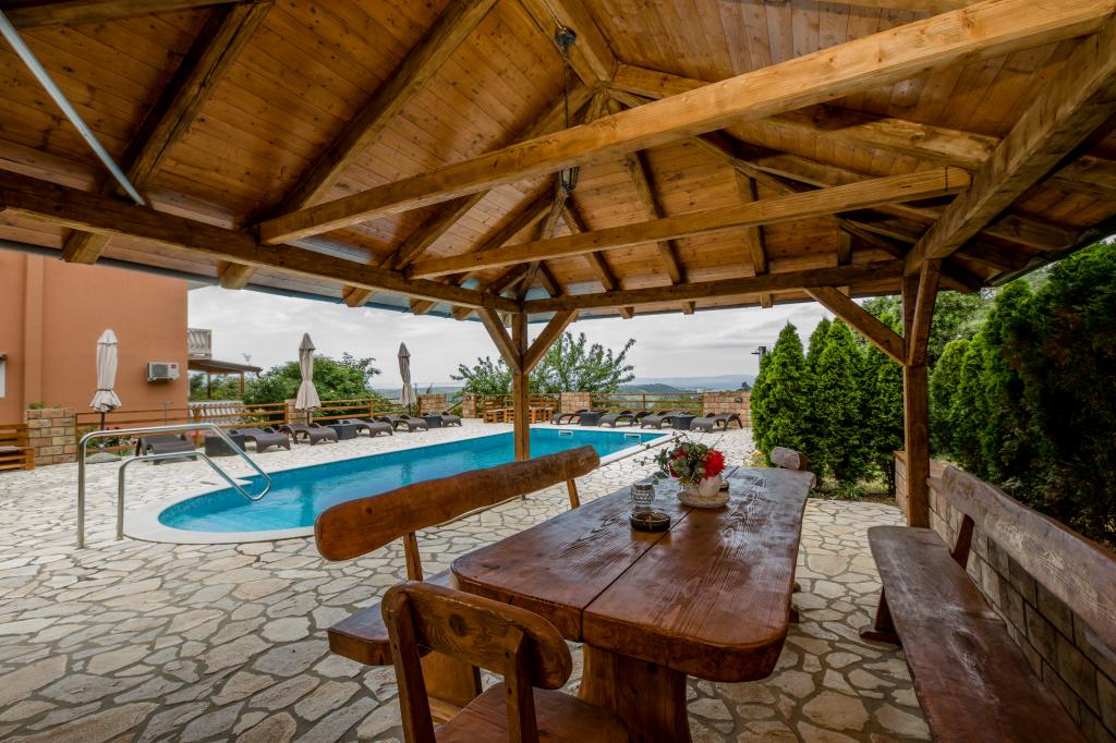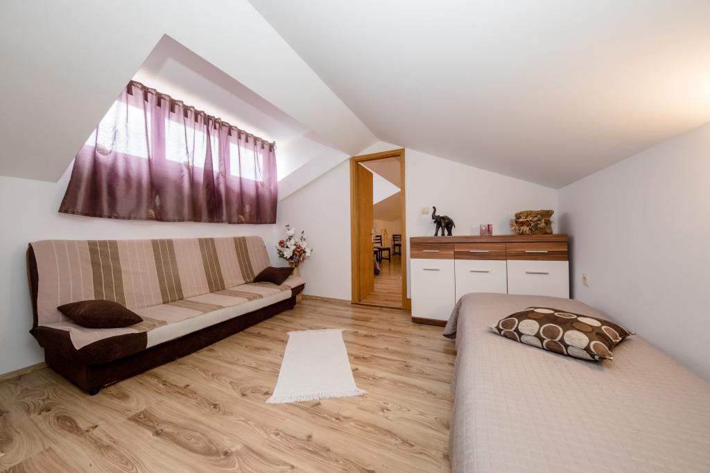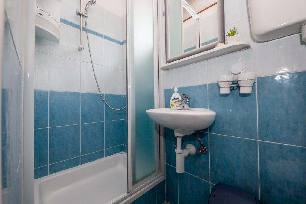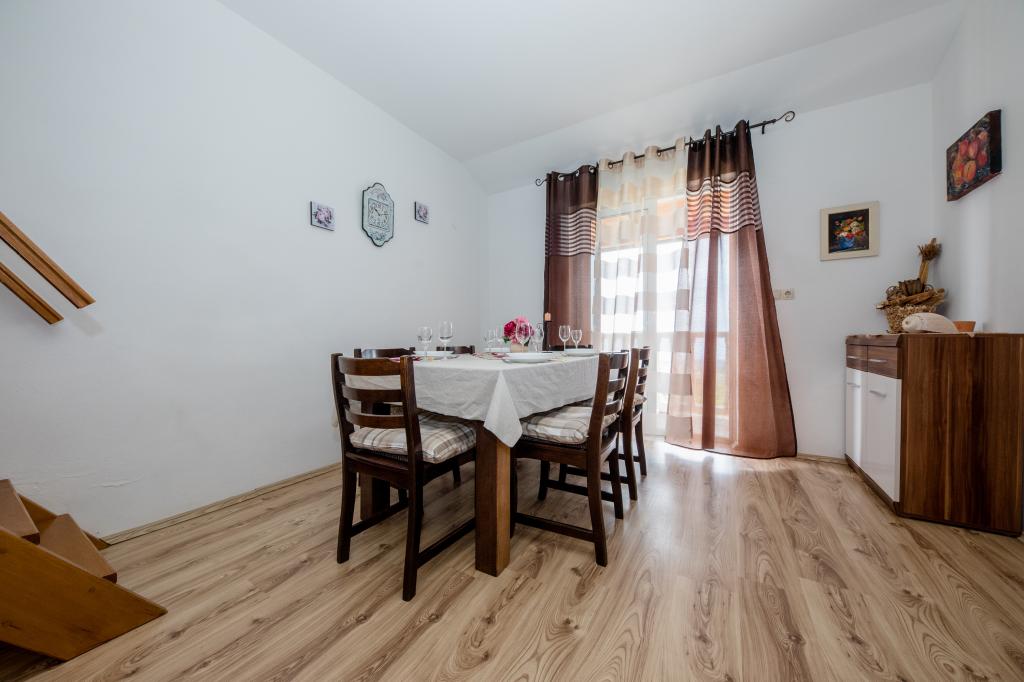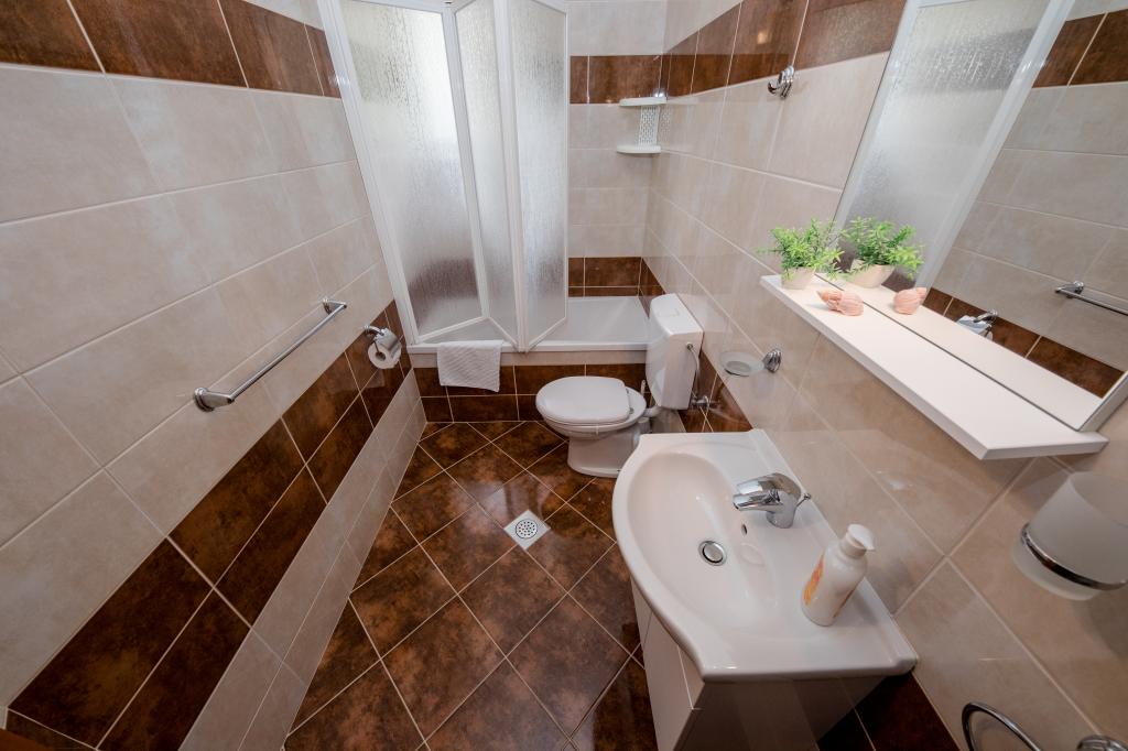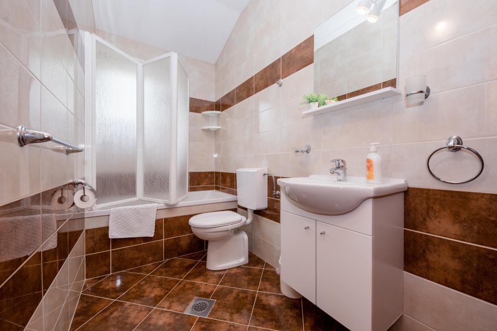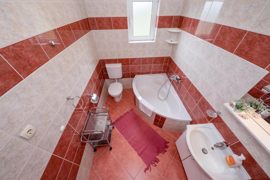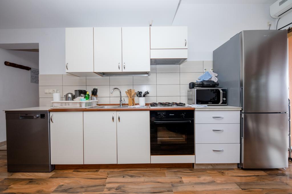 Modern ausgestattete Apartments auf 350 Meter über dem Meeresspiegel in einem ruhigen Dorf in Mundanije auf der Insel Rab namens Šćerba. Die Anlage ist ca. 2-3 km vom Meer, dem Zentrum und allen anderen wichtigen Orten entfernt, was ca. 10 Autominuten entfernt ist. Die Lage des Gebäudes bietet von allen Terrassen und Balkonen einen wunderschönen Blick auf die gesamte Insel und den größten Teil der Kvarner Bucht. Die Ruhe und wenig Verkehr unserer Stadt bietet einen perfekten und erholsamen Urlaub im Schutz der Natur und bei herrlichem Sommerwetter. Neben dem Haus befindet sich ein großer Parkplatz und hinter dem Haus befindet sich ein schön angelegter Swimmingpool und daneben eine Liegewiese.